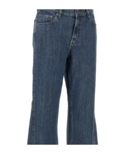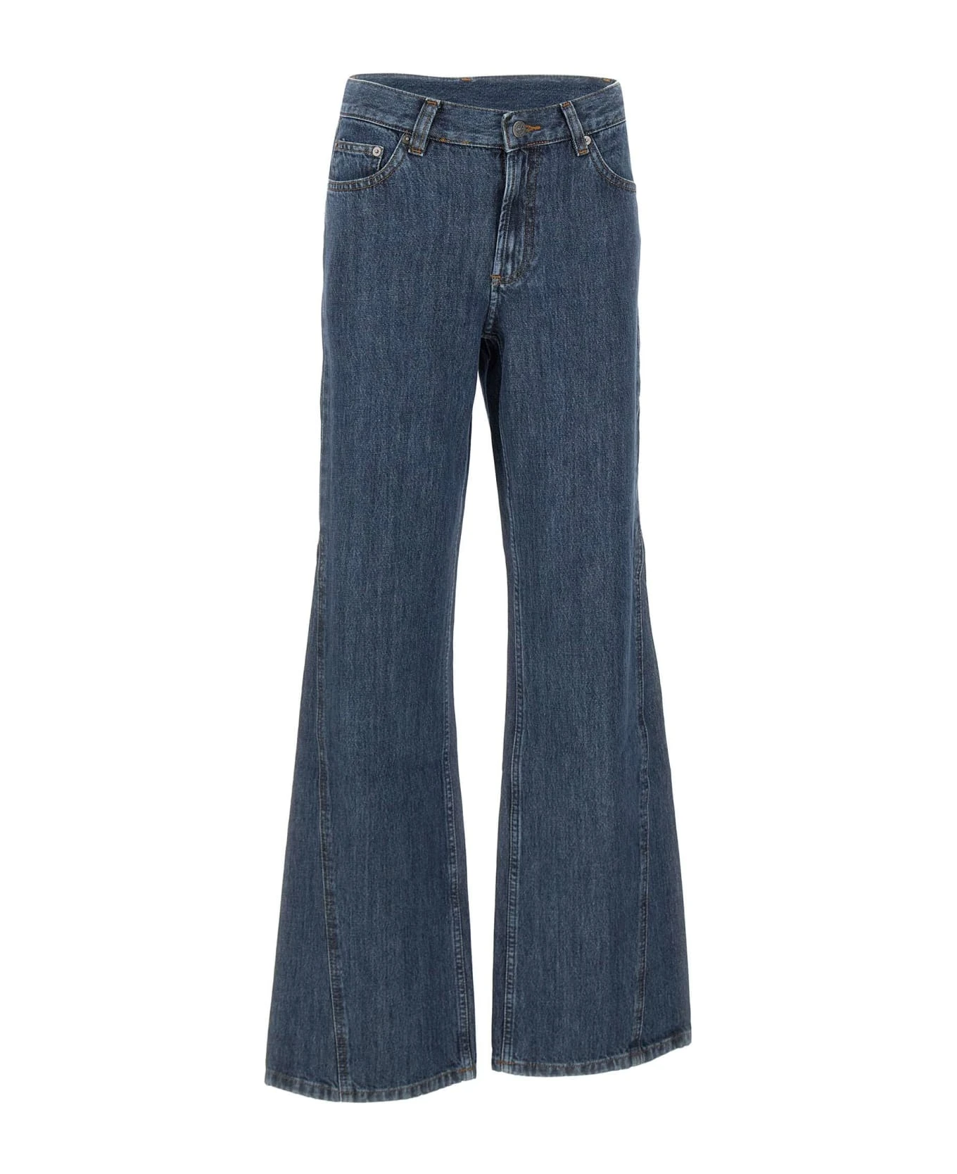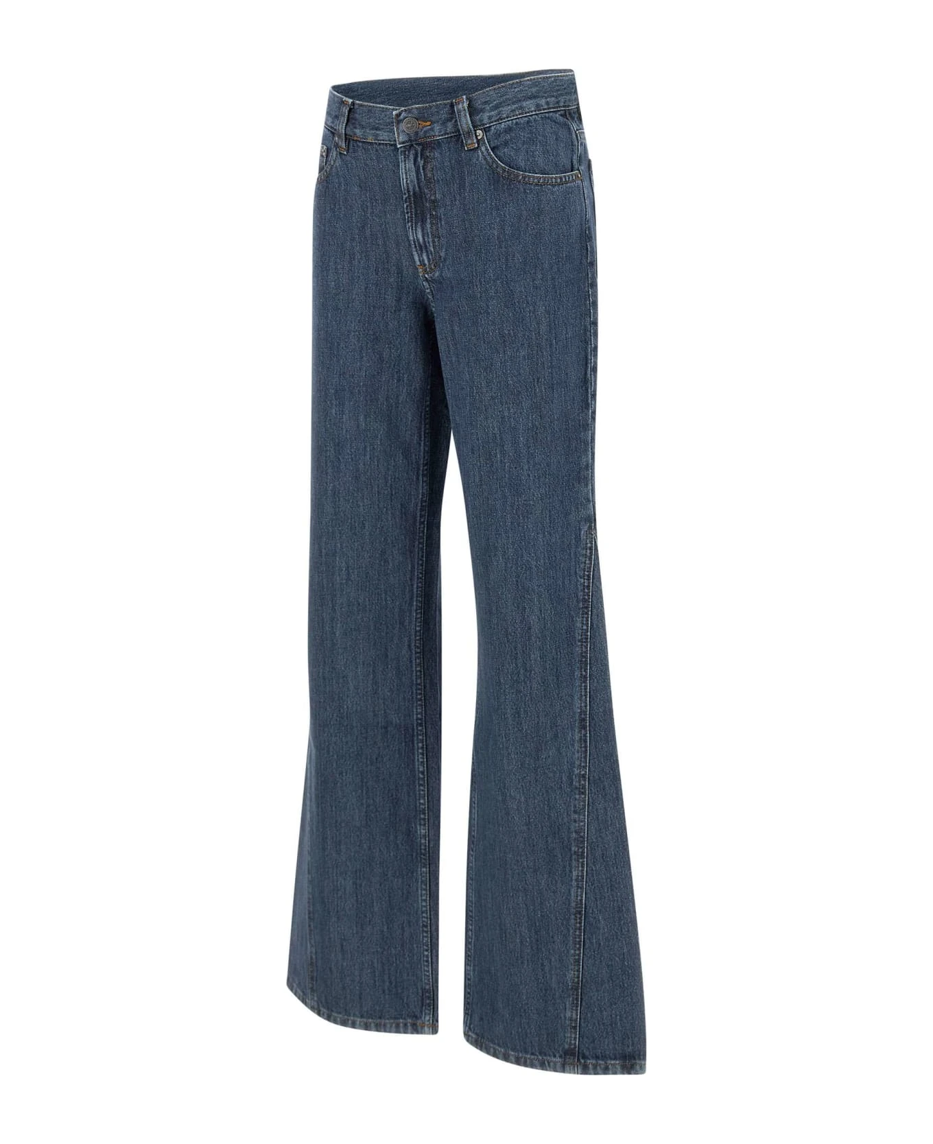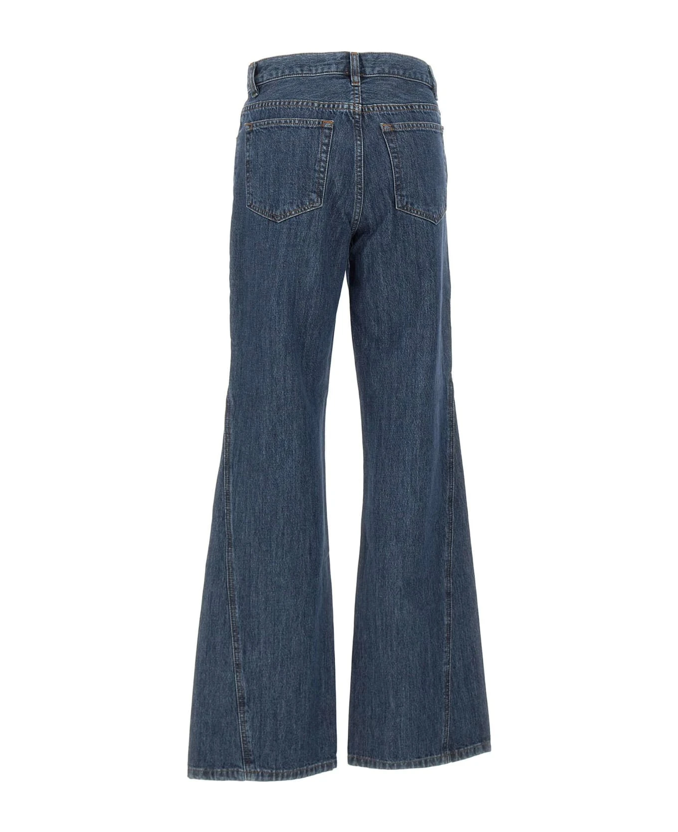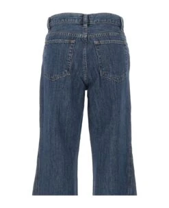 A. P. C. women’s jeans “Jean Elle”, denim blue, high waist with belt loops, button and zip fastening, five pocket design, flared leg, slim fit.