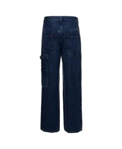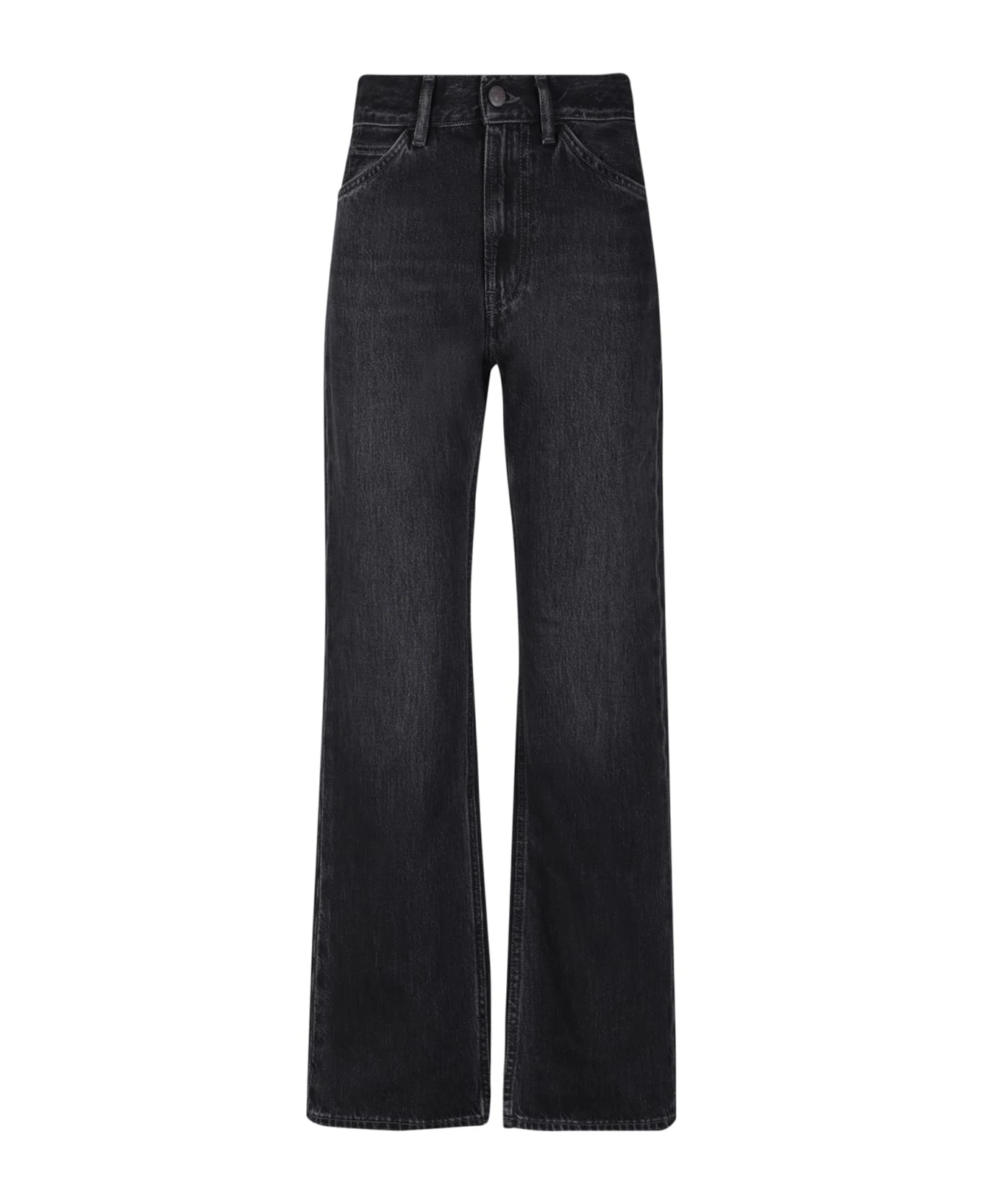 High neck. Belt loops. Classic five pockets. Front button fastening. Color: black
