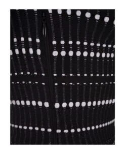 Alexander McQueen short sheath dress in black knit with bare shoulders, straight neckline, short sleeves and contrasting inlay in white nylon-cotton yarn. Concealed side zip fastening.