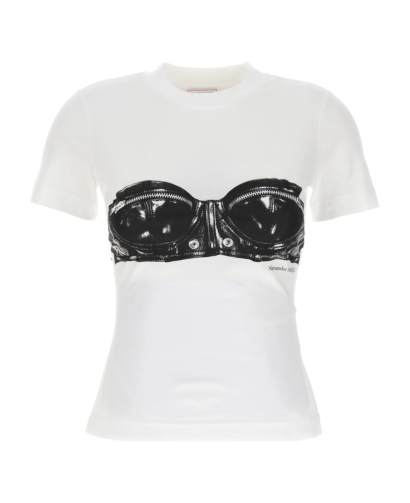 Cotton crewneck t-shirt with trompe l’oeil corset print.