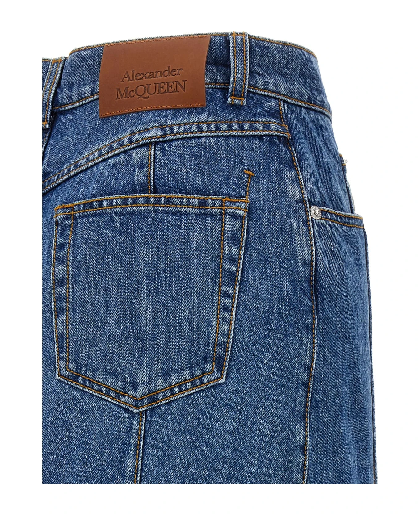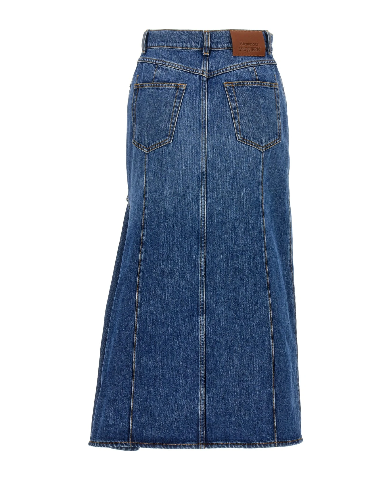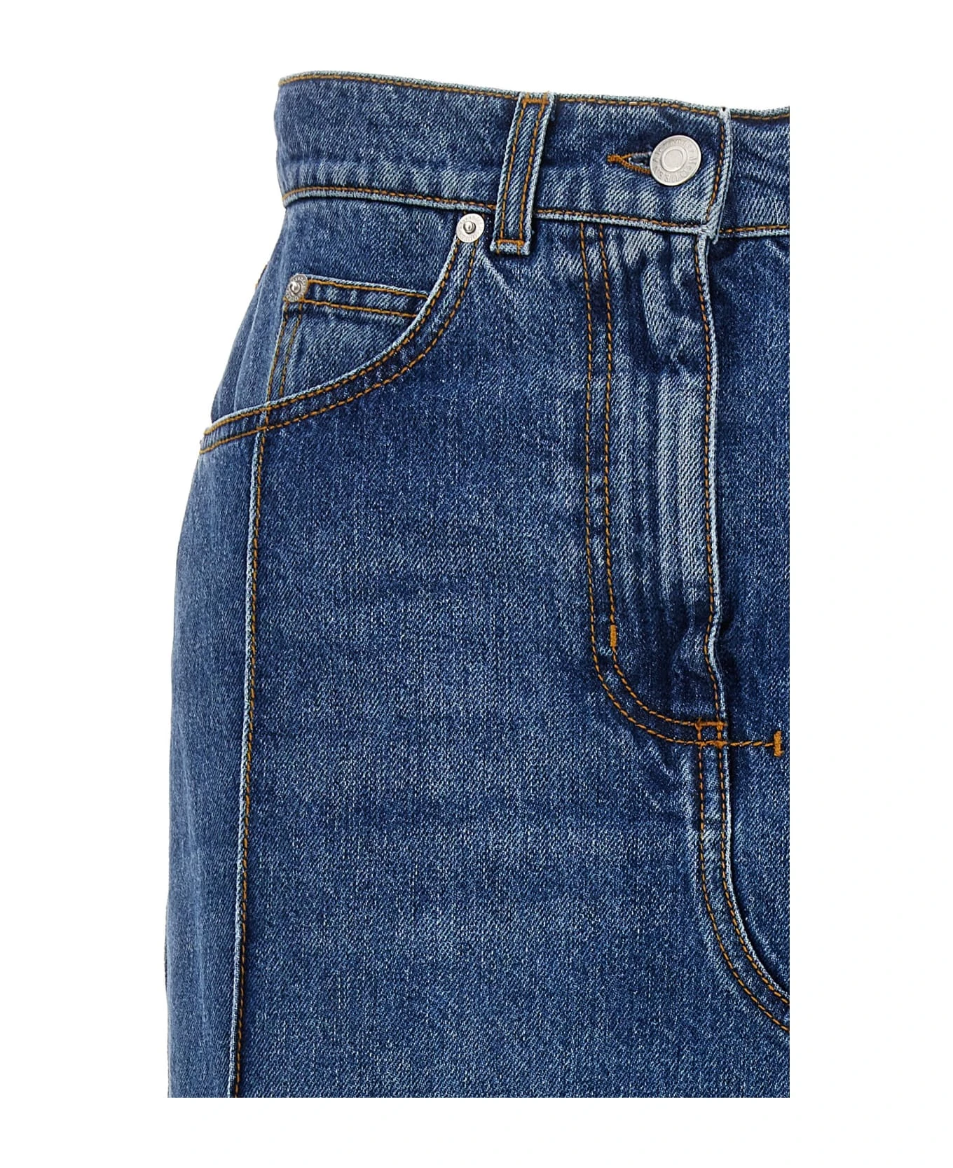 Denim midi skirt with maxi cut out on the front, button and zip closure.