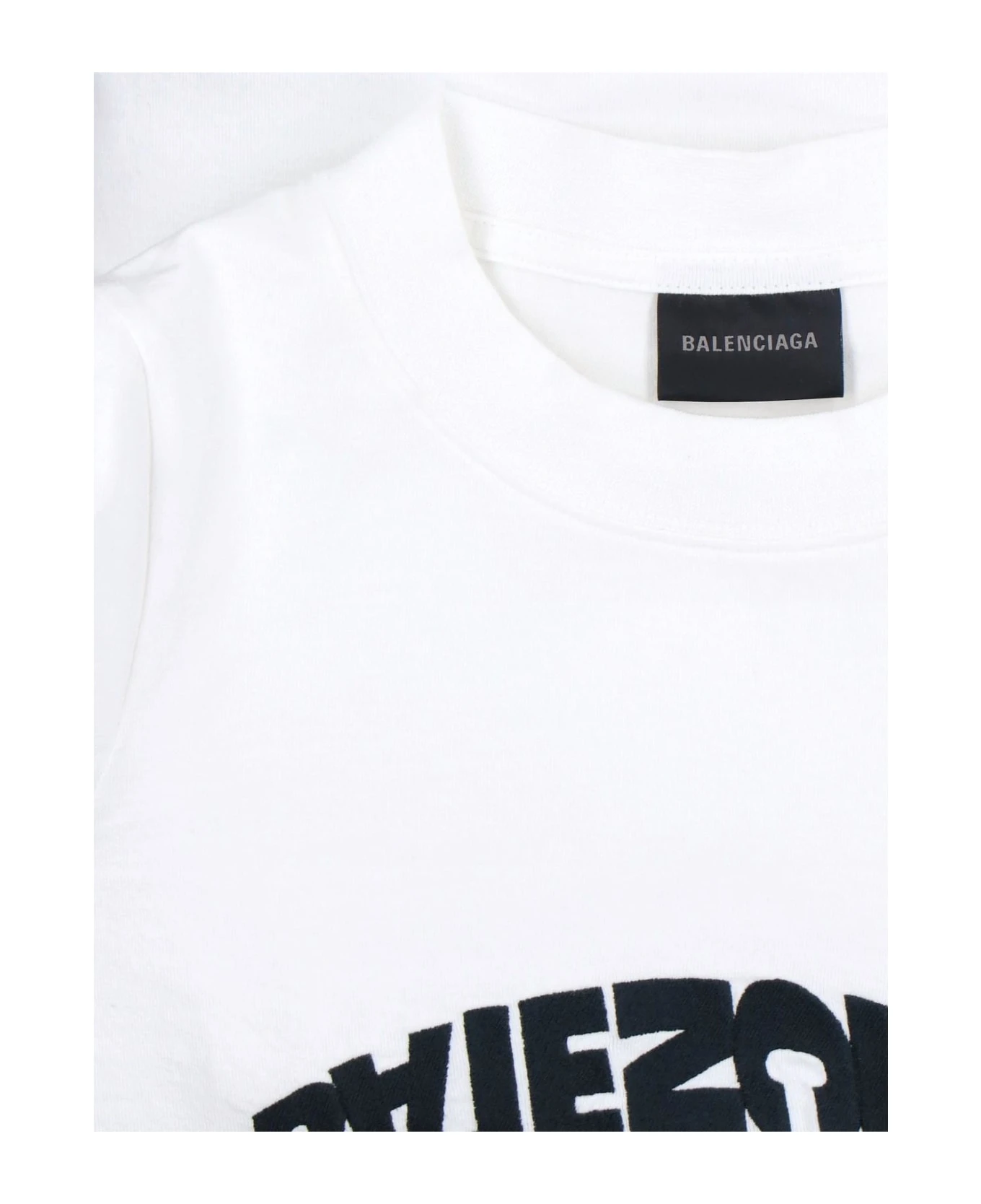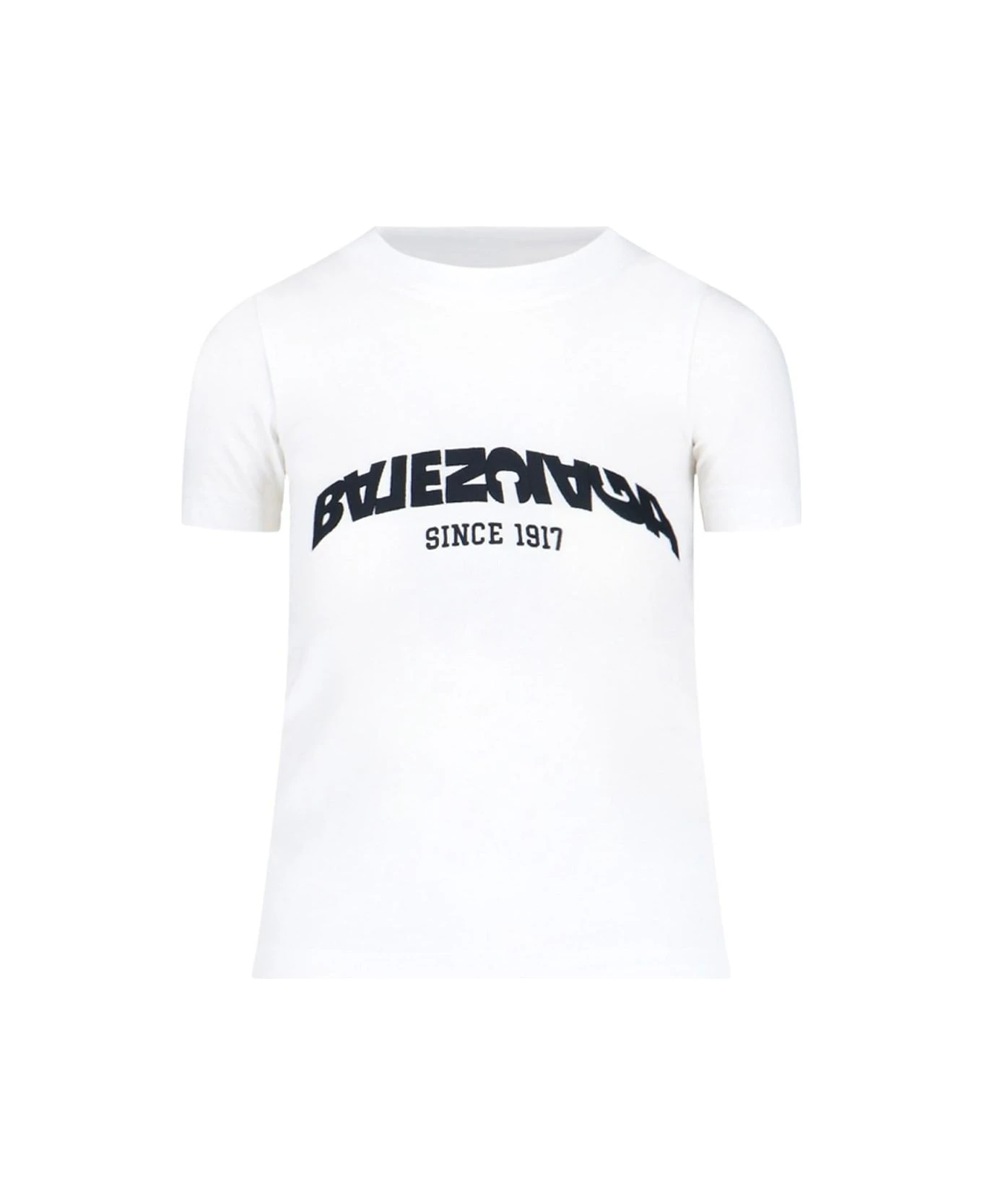 Balenciaga logo flip T-shirt in white cotton with crewneck, short sleeves, black embroidered logo on the front, and straight hem.