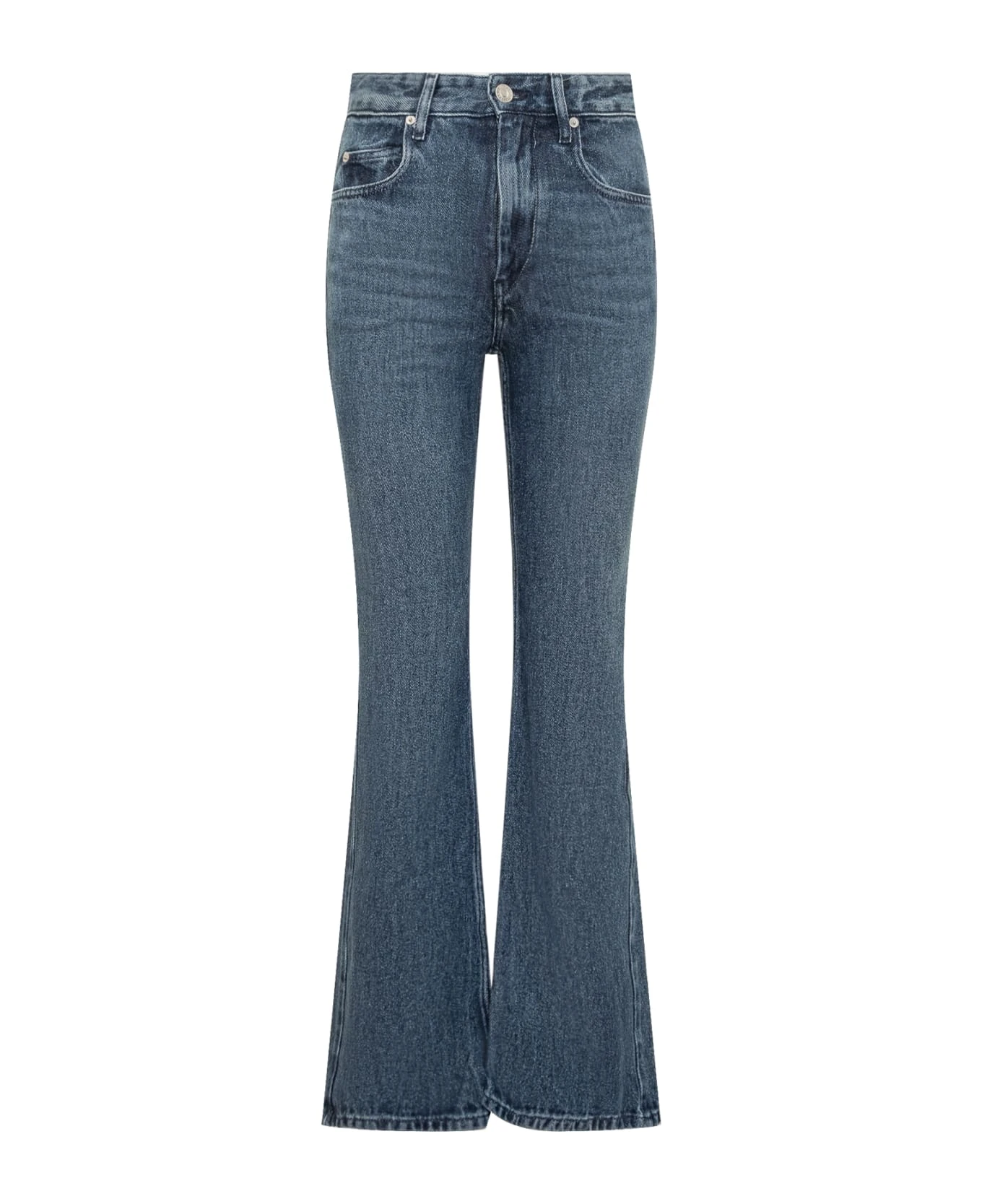 Long denim trousers. Front button and zip closure. Belt loops. 5 pockets.