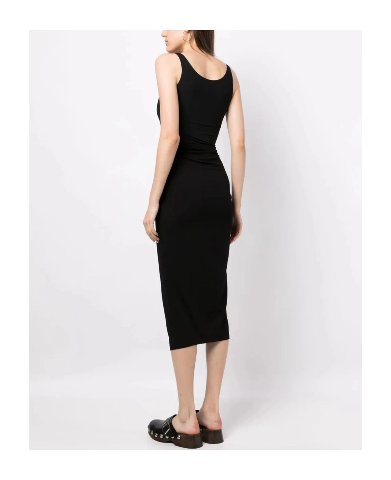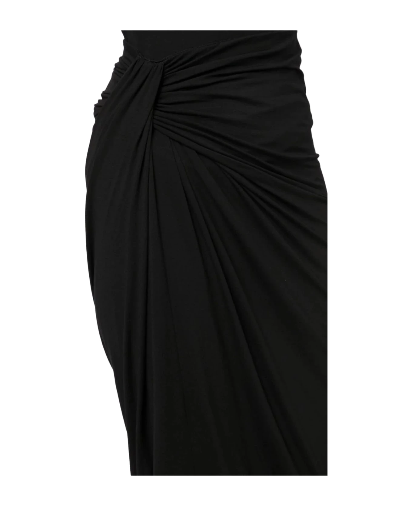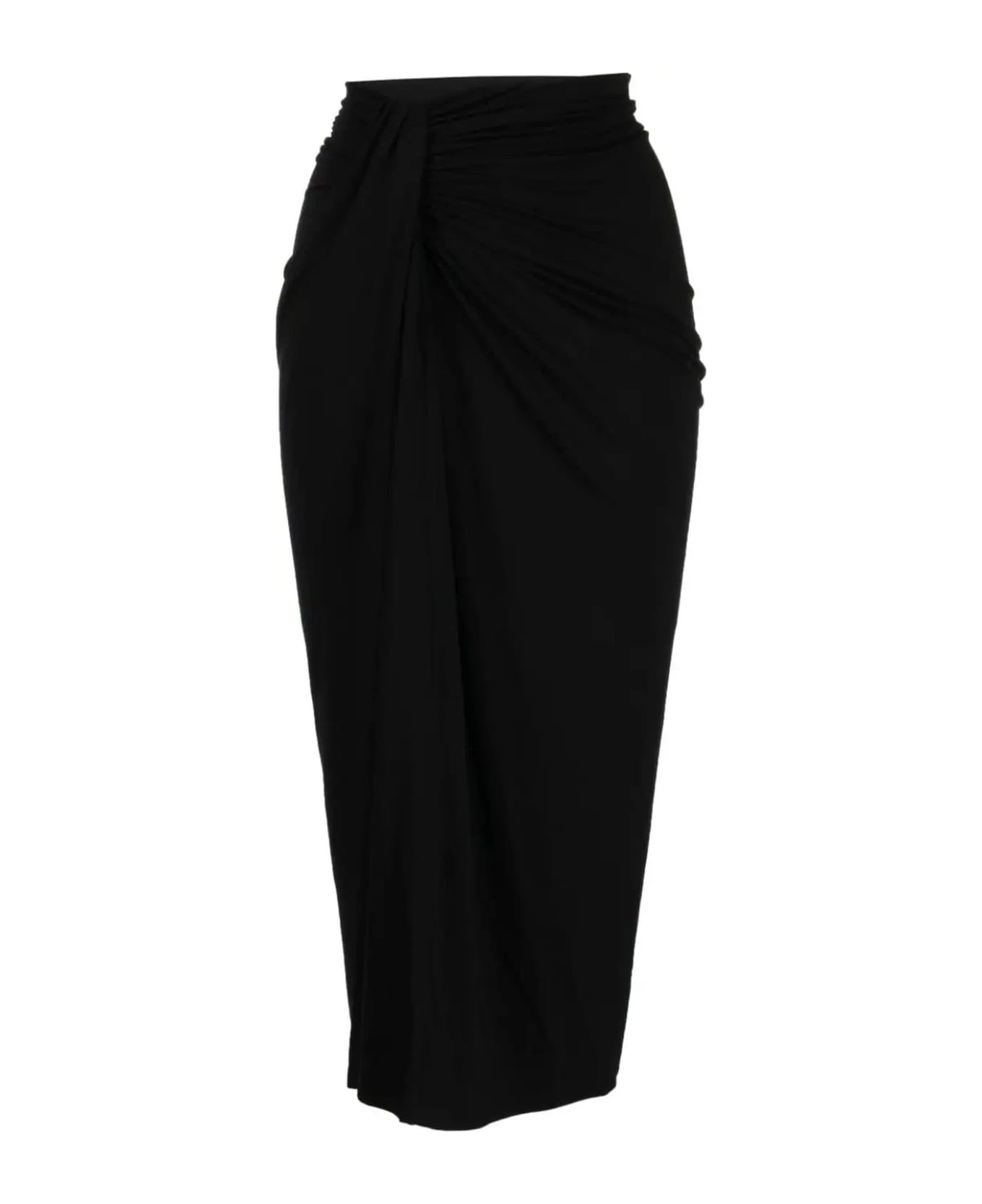 Black Jeldia gathered-detail skirt, stretch-design, high waist, calf-length