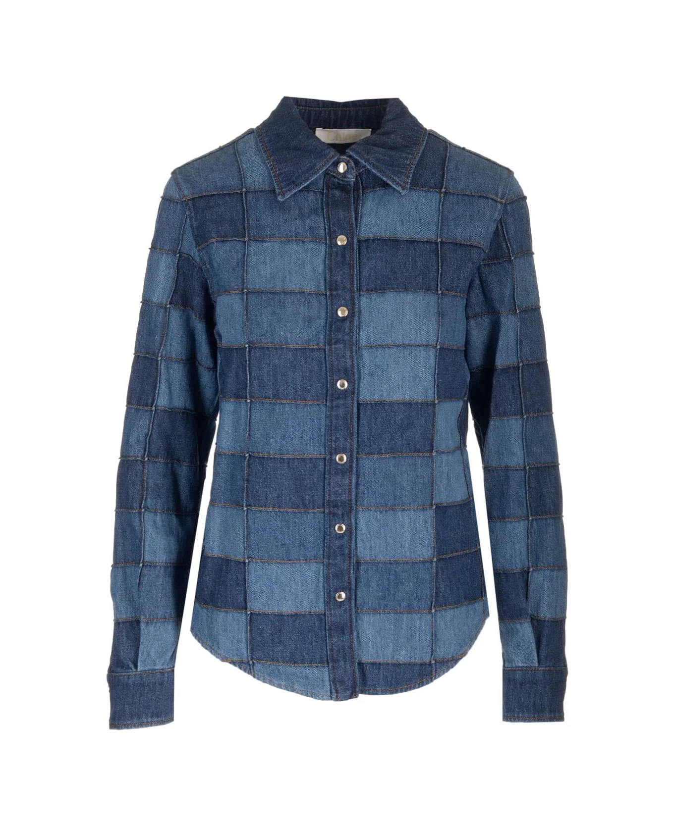 DENIM PATCHWORK SHIRT RECYCLED COTTON HEMP MULTICOLOR BLUE