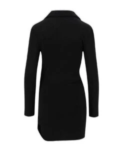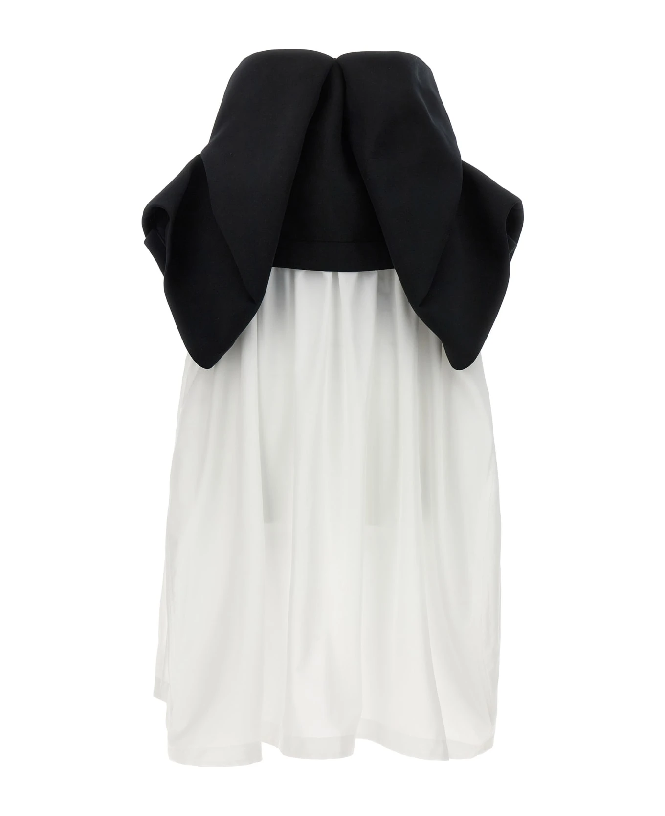 Loose dress in cotton poplin with structured hood application with rigid neoprene pleats with half sleeves.