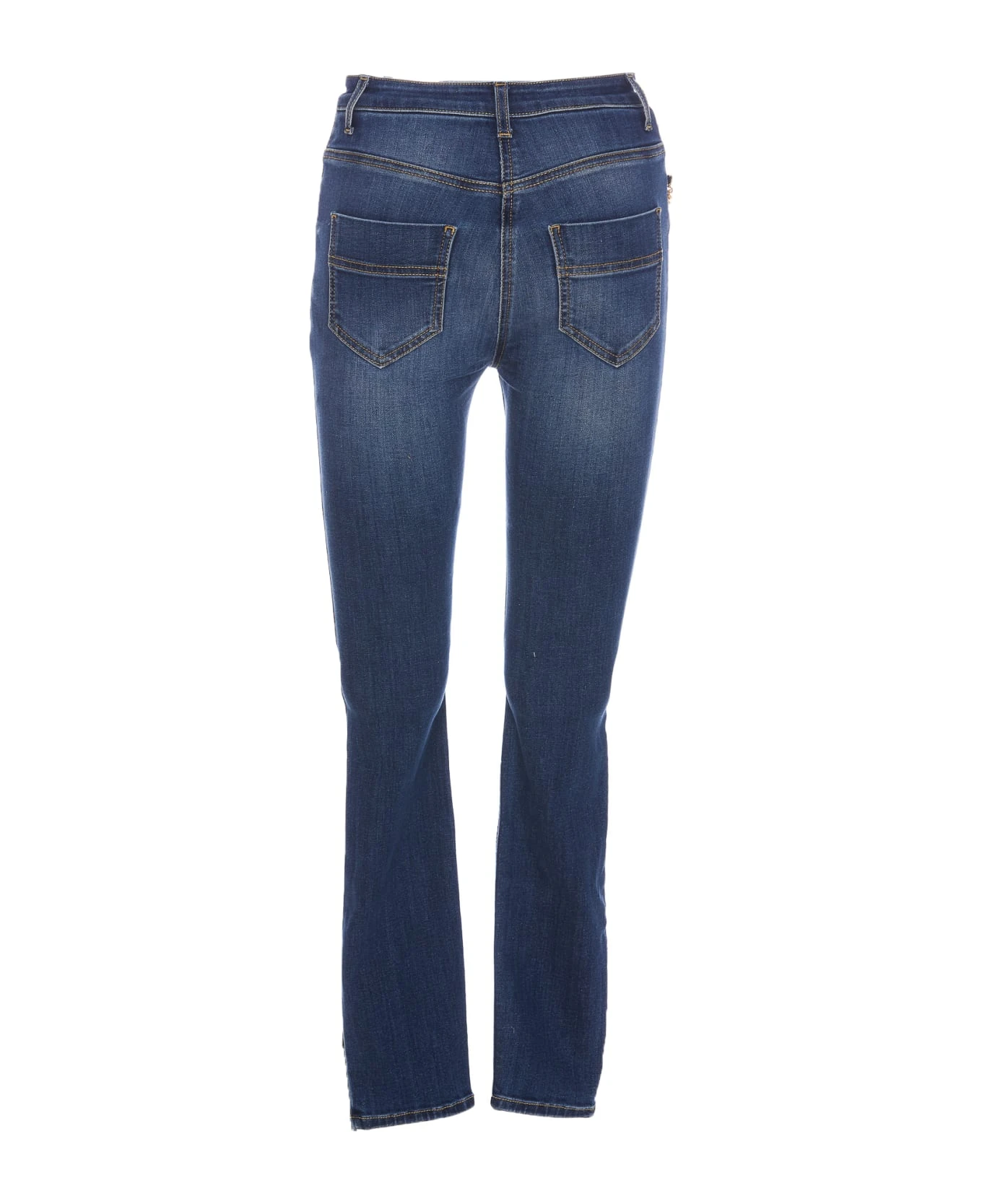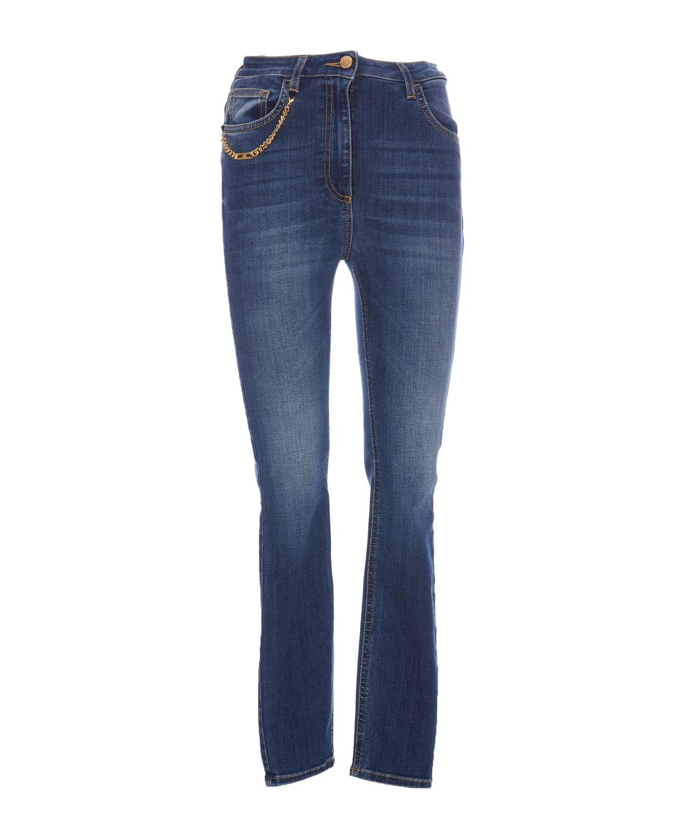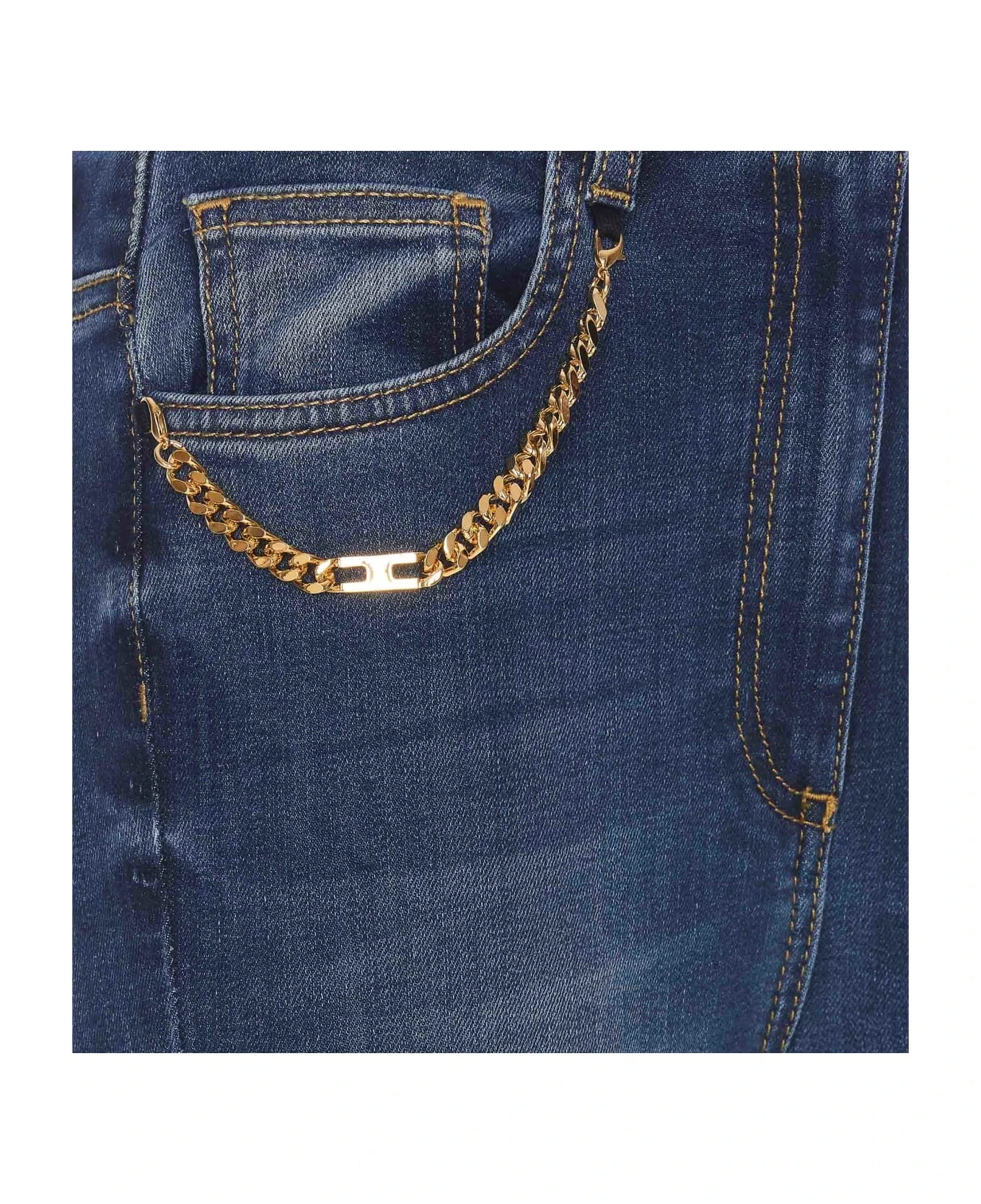 Elisabetta Franchi denim jeans with frontal button and zip closure, 5 pockets, chain detail, skinny model