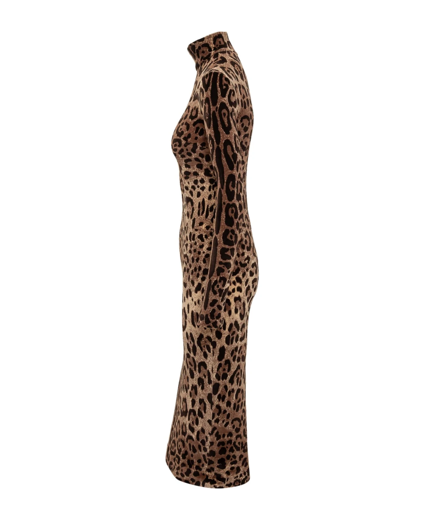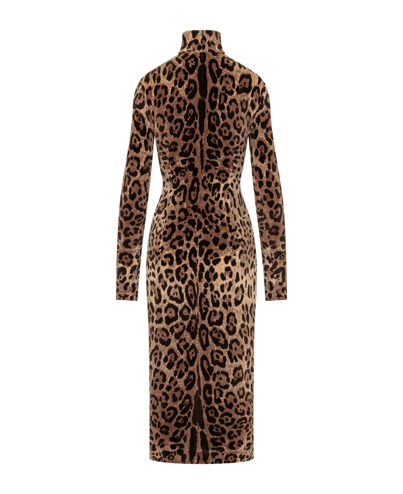 Long dress. High neck. Long sleeves. All-over leopartadata print. Zip back closure.
