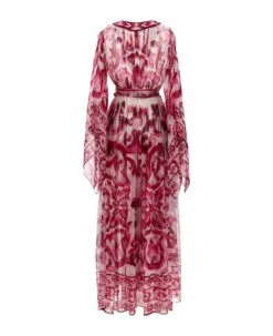 Majolica-print midi dress from DOLCE & GABBANAStretch-design. Majolica print. Square neck. Sleeveless. Knee-length. 94% Silk, 6% Elastane. Made in Italy.