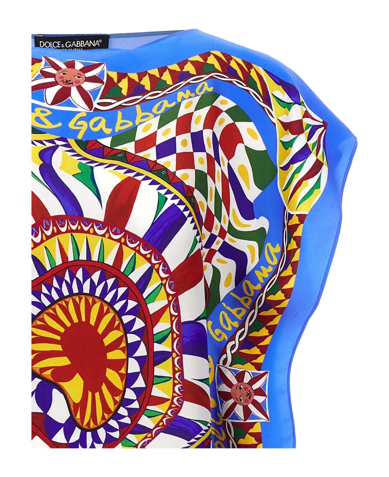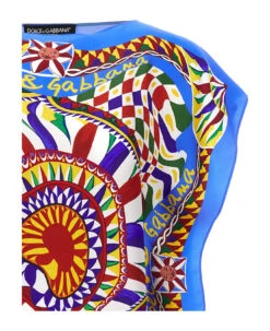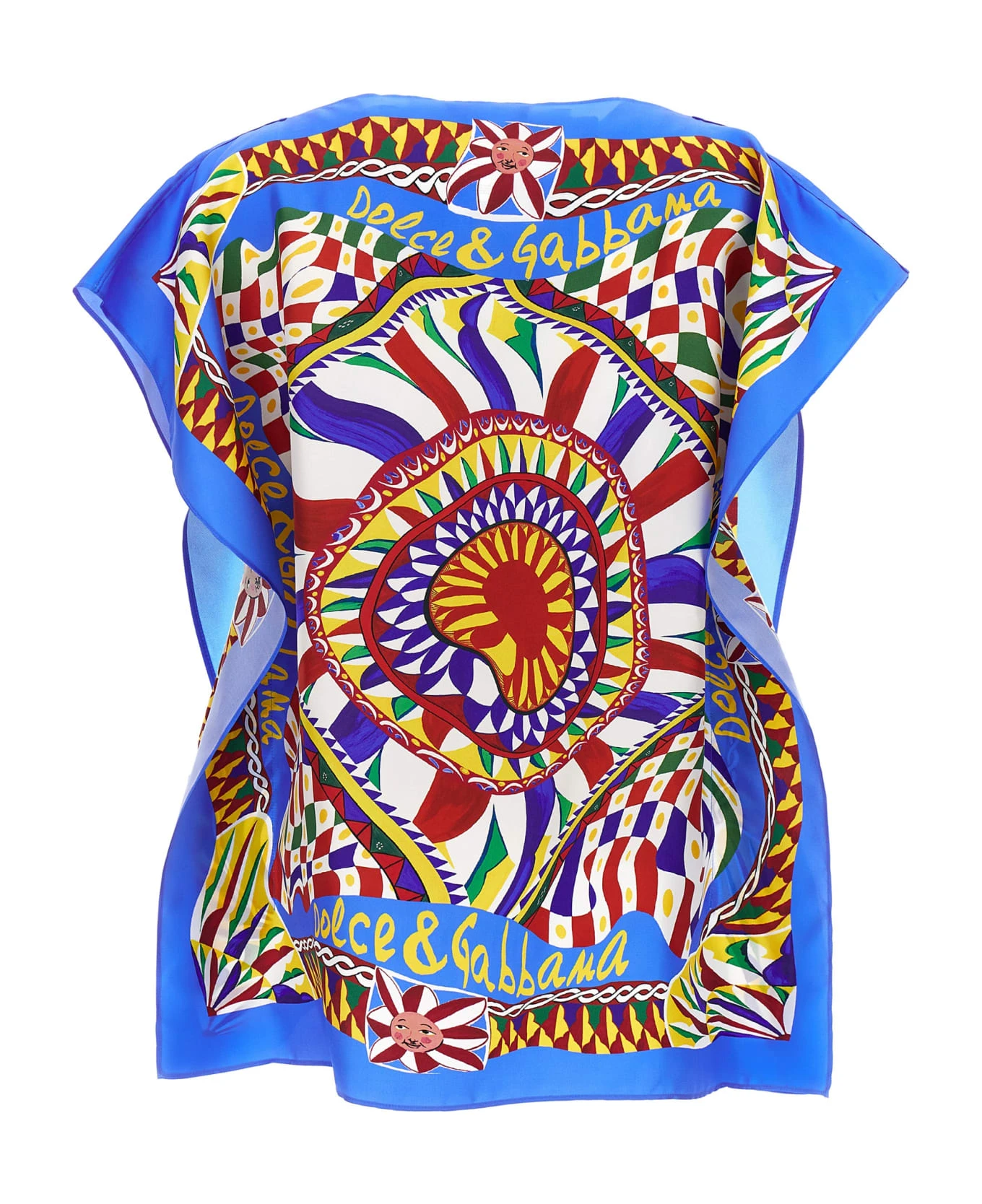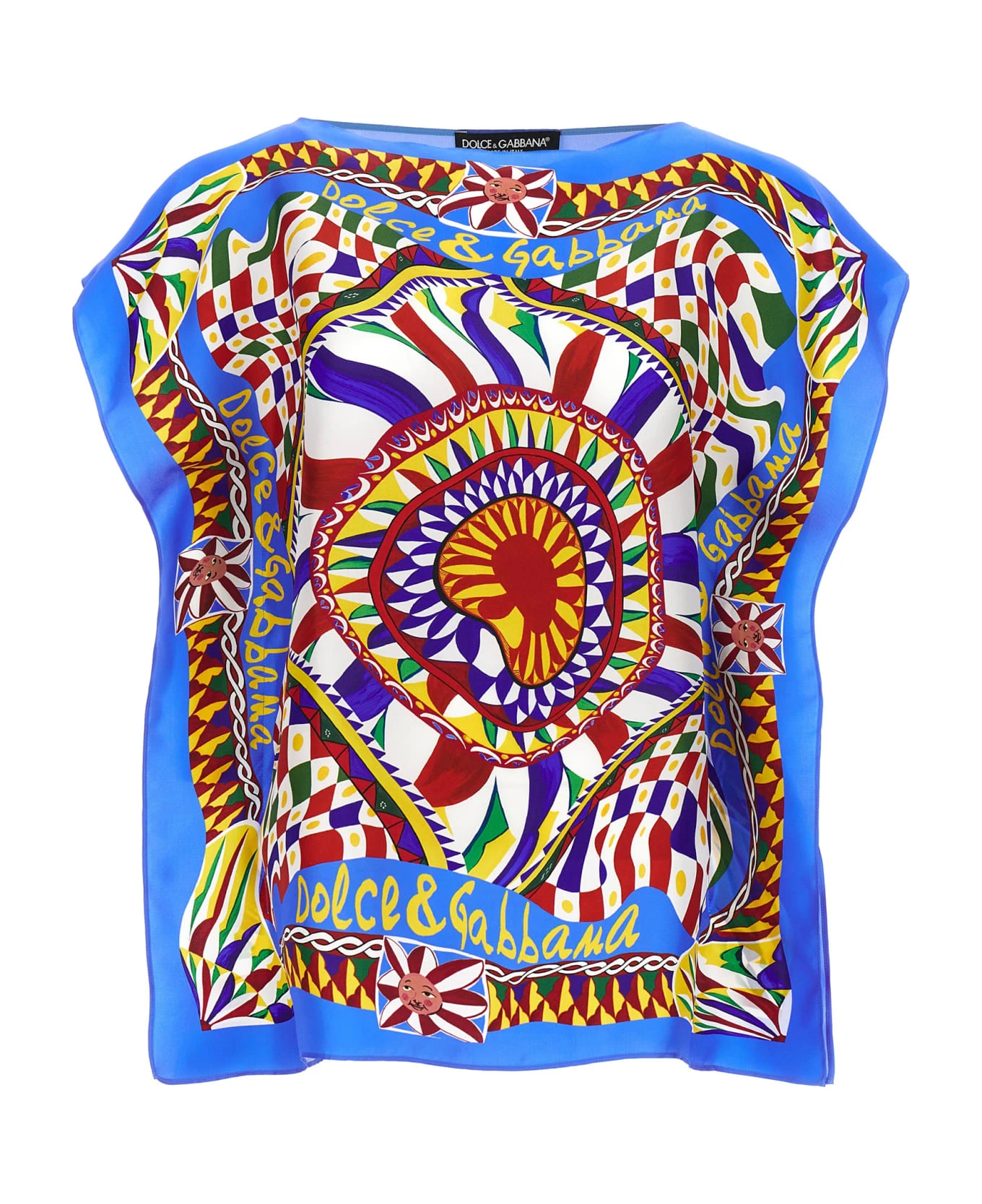 ‘Carretto’ print silk top with soft neckline, sleeveless.