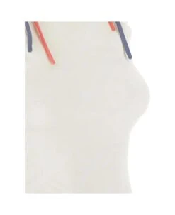 Fendi halter neck top in white viscose with mirror effect logo jacquard, sleeveless design, tight fit, contrasting pink/grey striped hems and tubular tied-up laces on the shoulders.