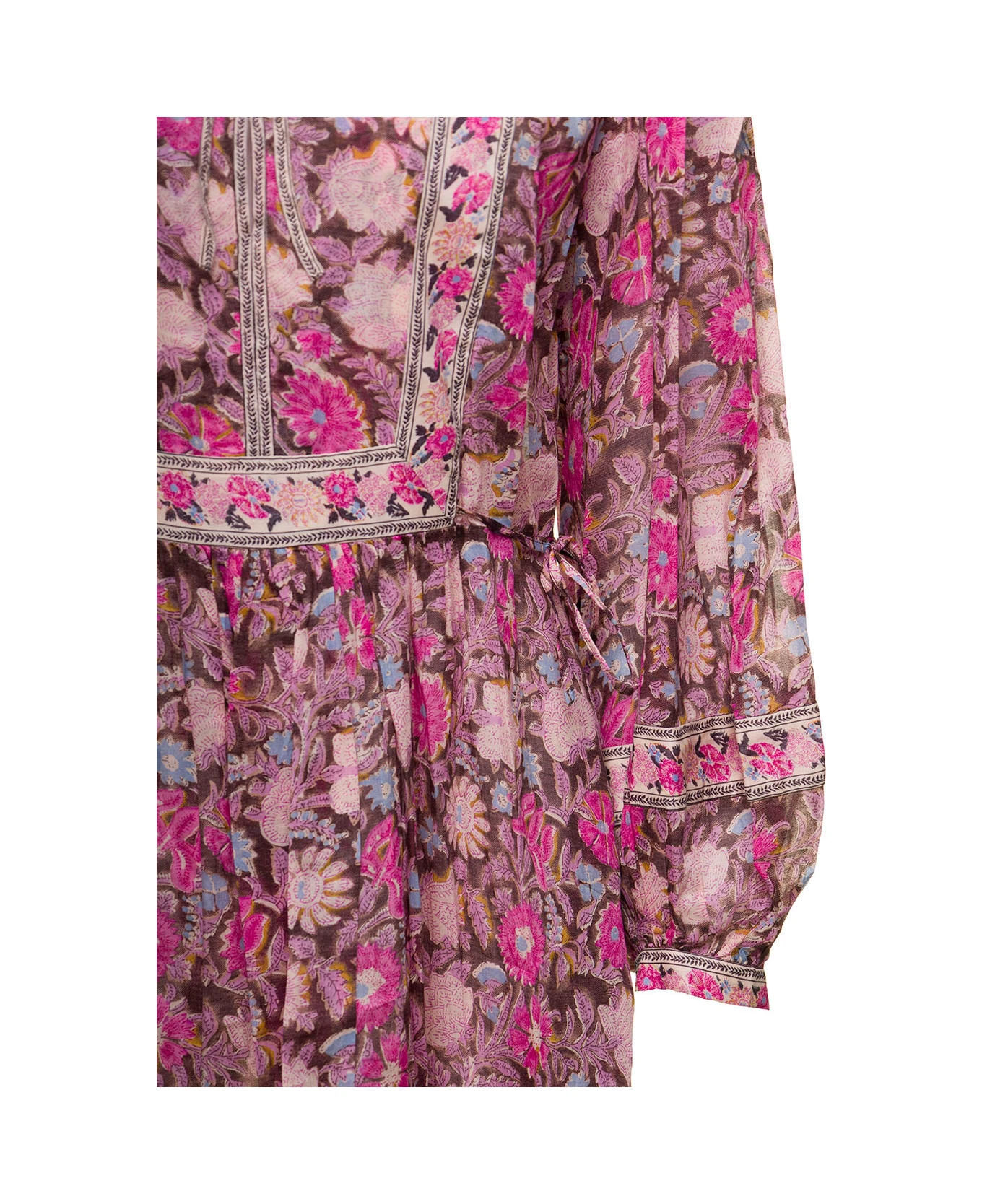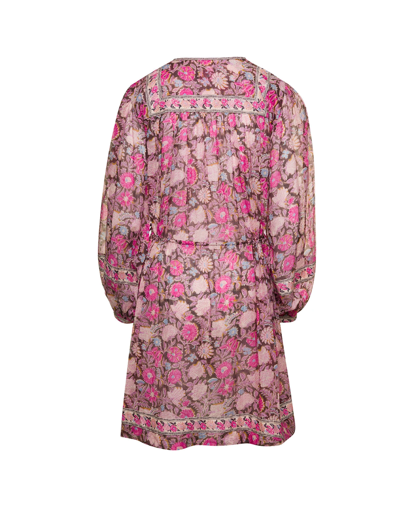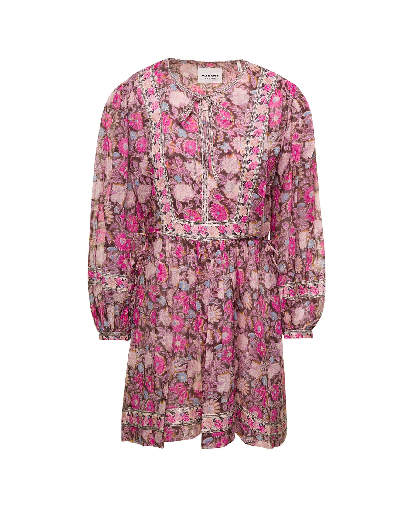 Mini dressAll-over floral print Round neck with front tie fastening Long Sleeves Above-knee lenght skirtPink Cotton Regular Fit