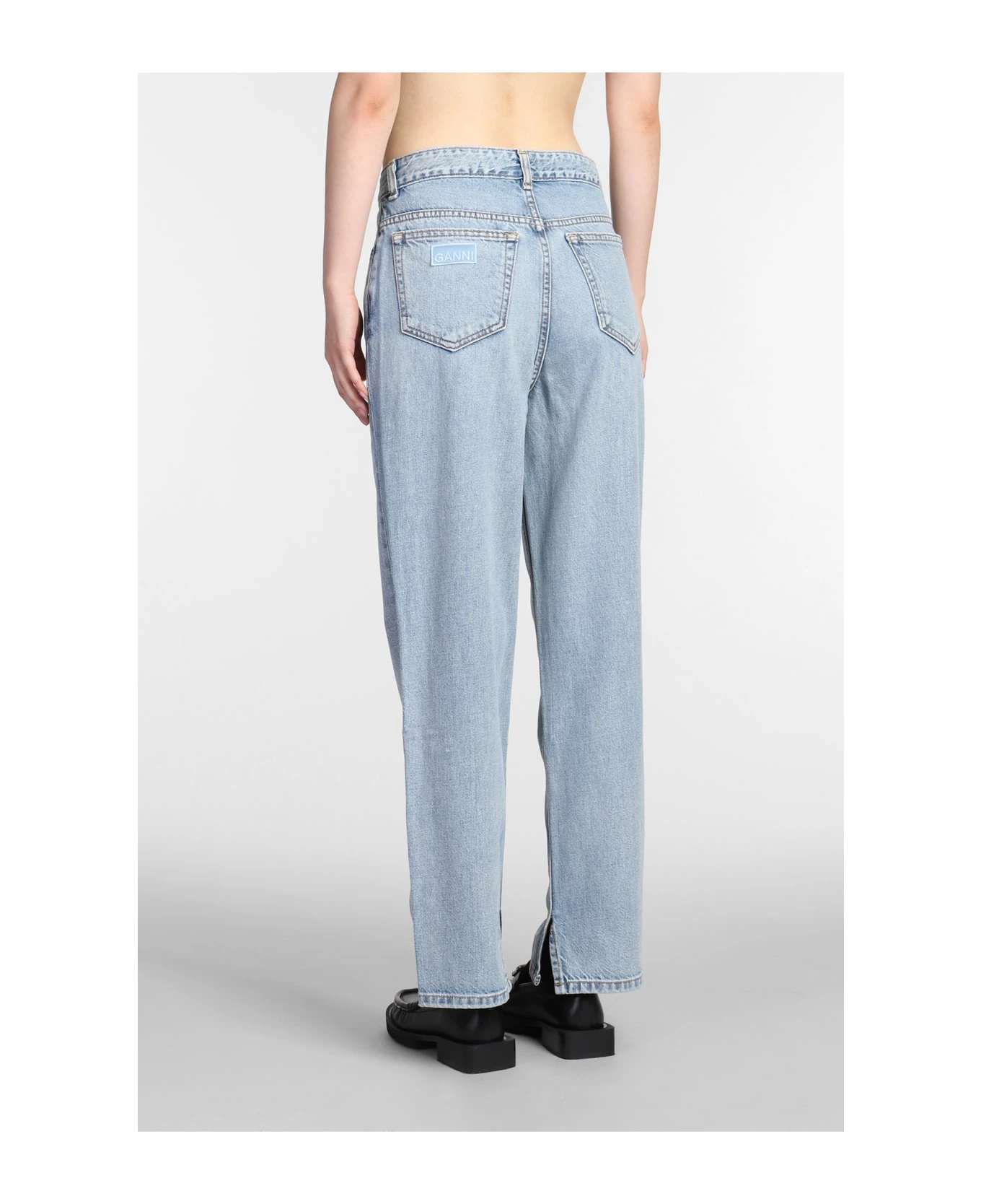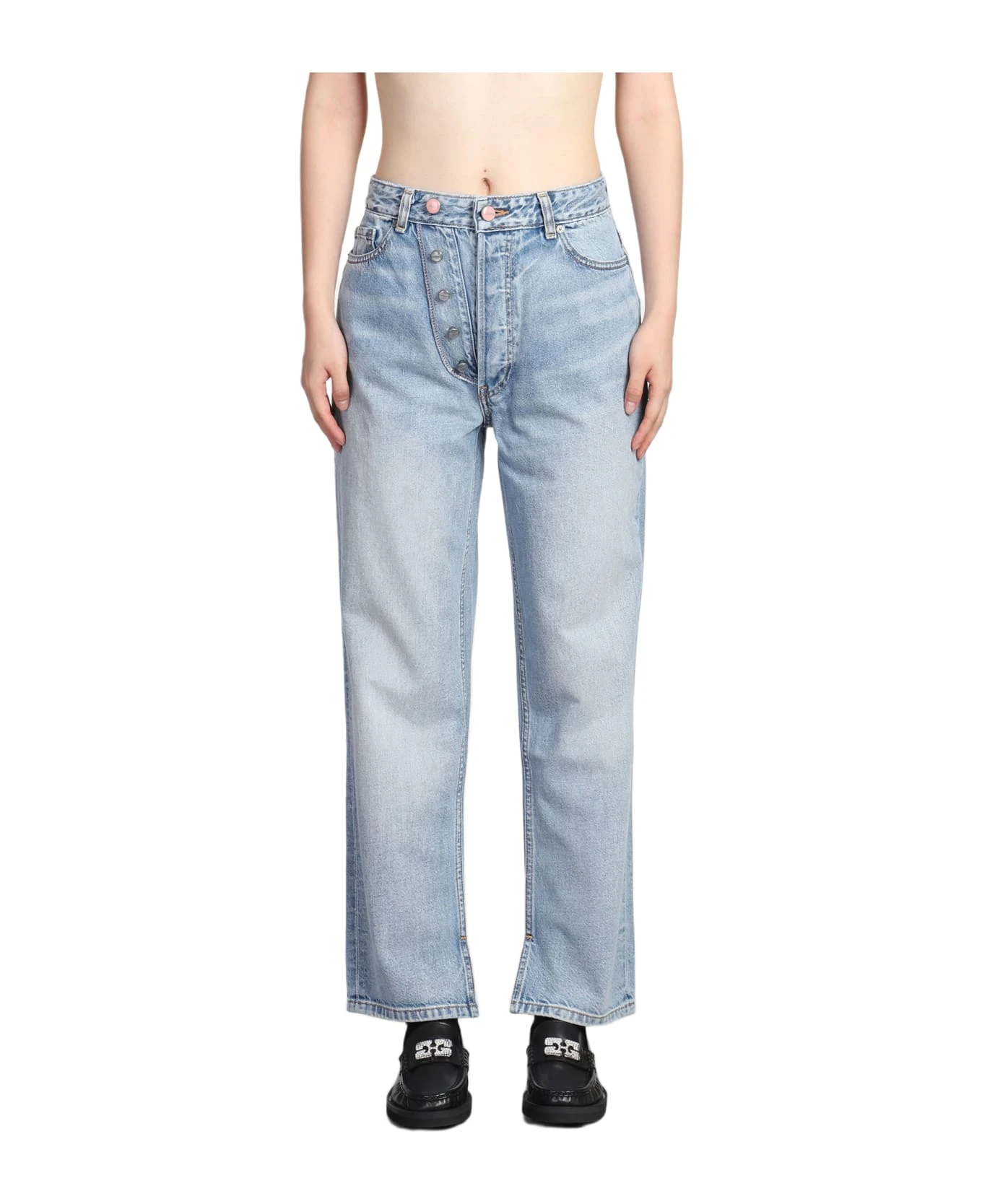 Figni Jeans in blue cotton, flap closure, five pockets, belt loops, back patch logo, straight leg, 100% cotton, Made in Turkey, Model is 1,77 cm and wears size 26