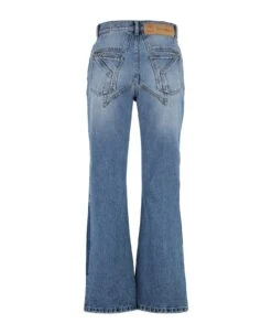 Golden Goose jeans crafted in stretch-cotton denim with medium vintage wash. Five-pocket design, it features front fastening with zipper fly and button and belt loops. Decorated with the iconic metal-star appliques on the back of the waist. Bootcut fit. The model is 177 cm tall and wears size 26.