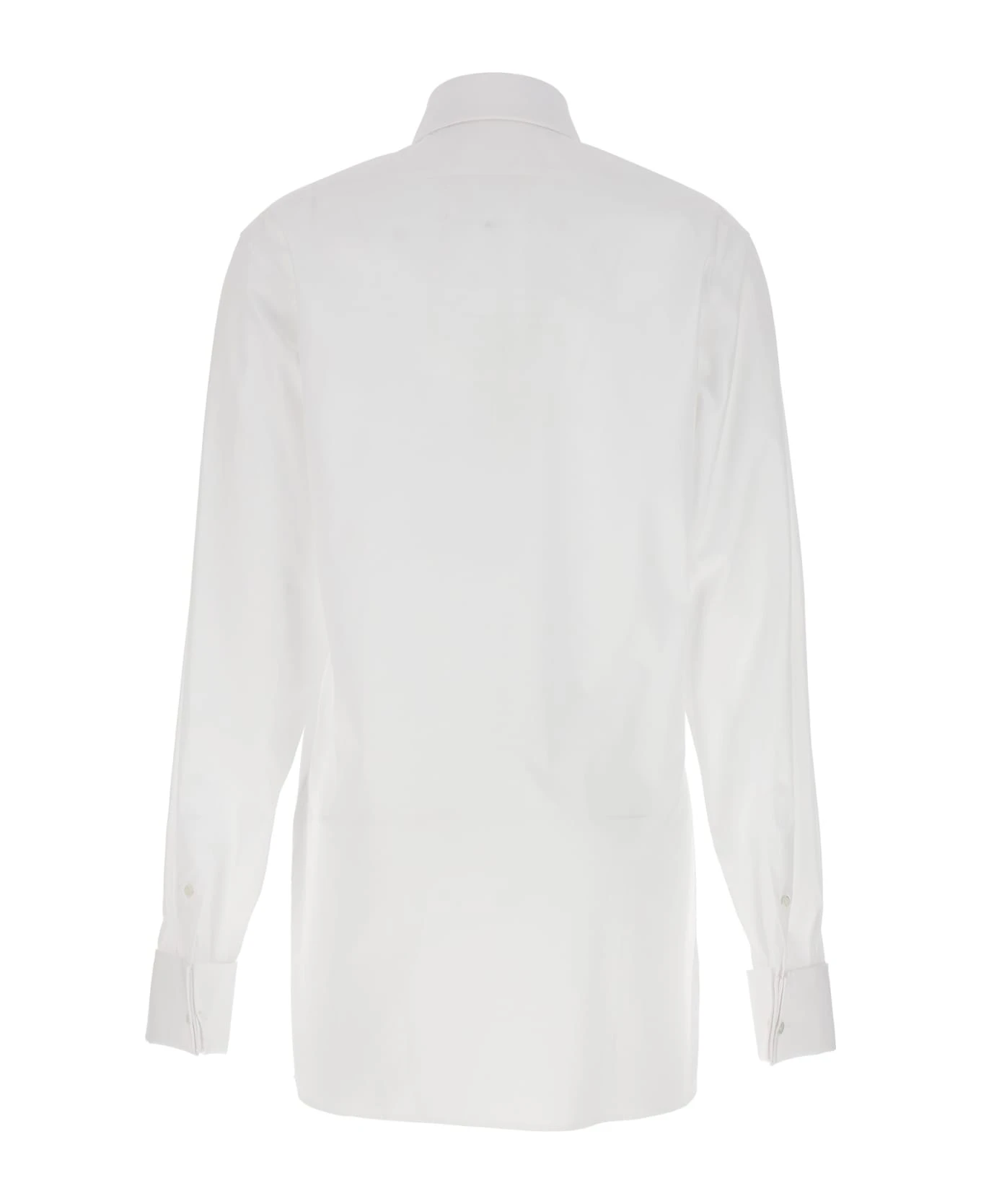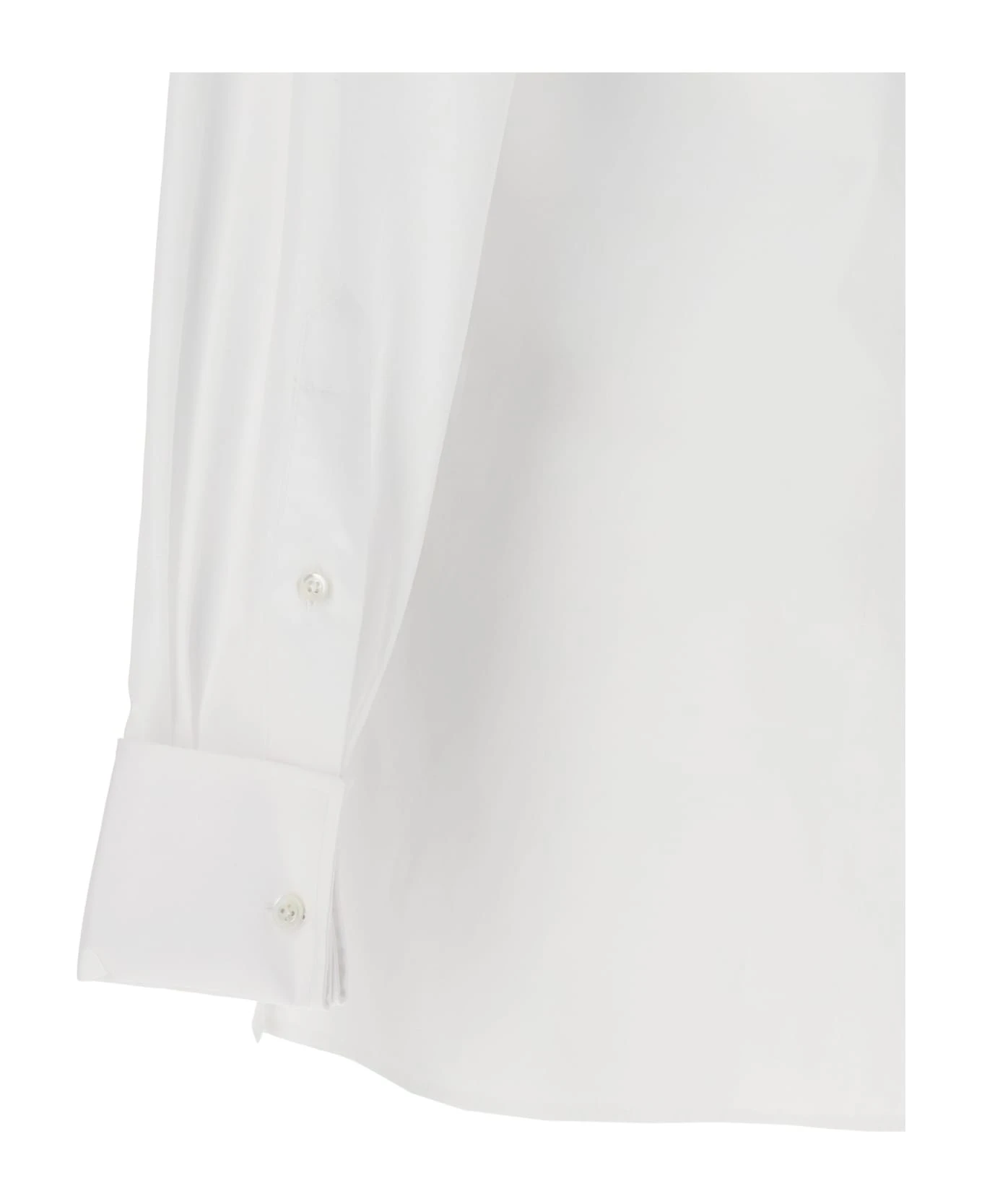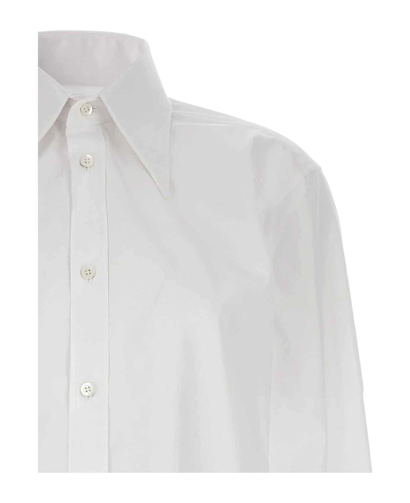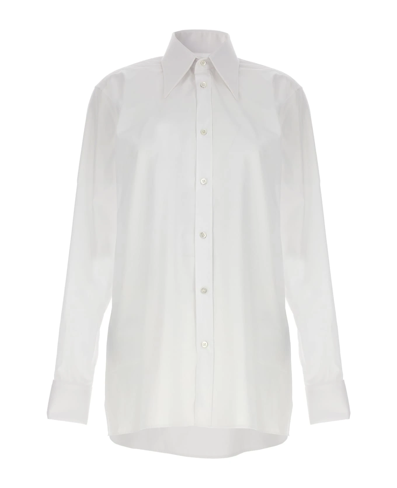 Long cotton poplin shirt with button closure, and long cuffed sleeves.
