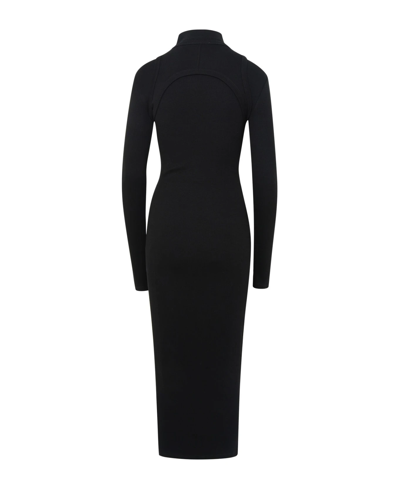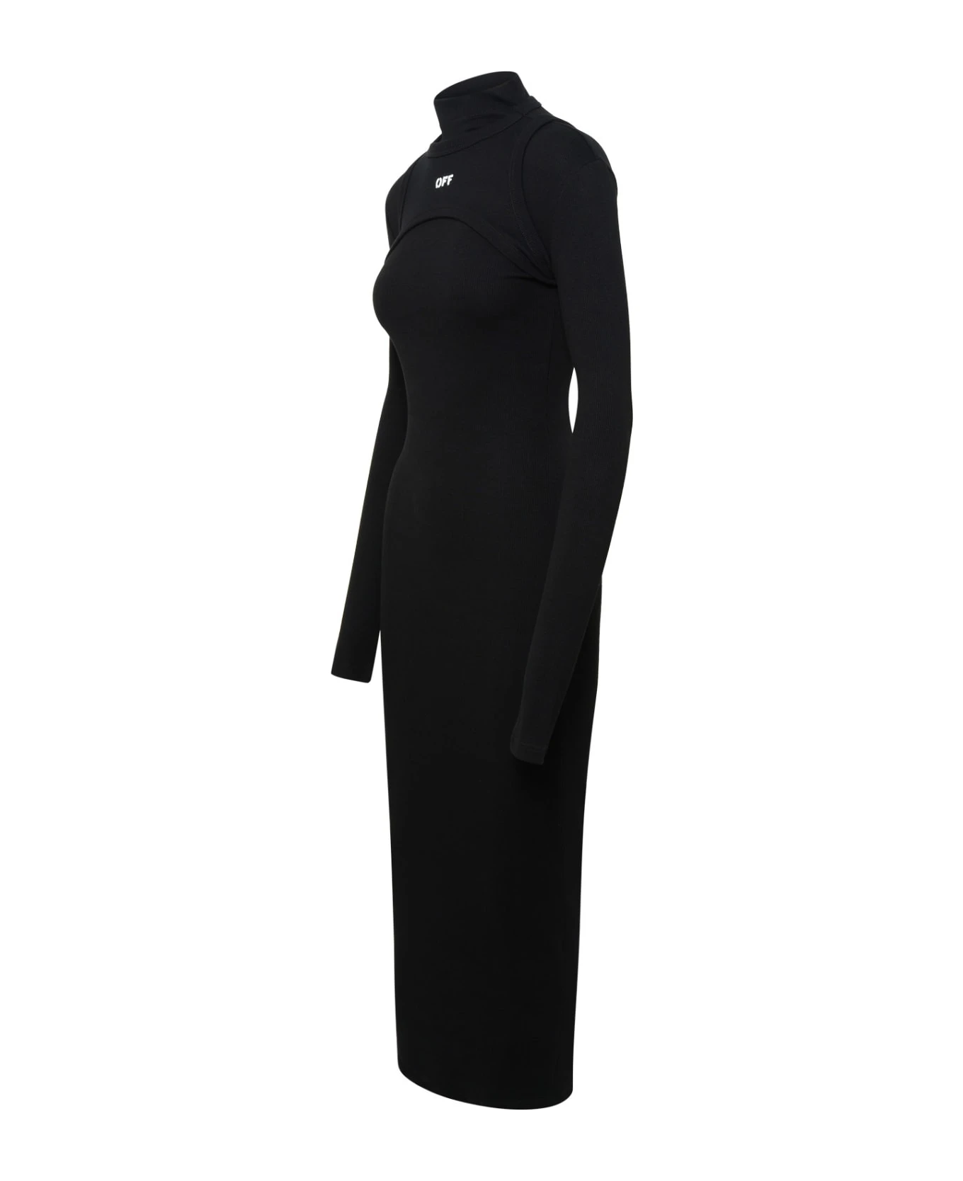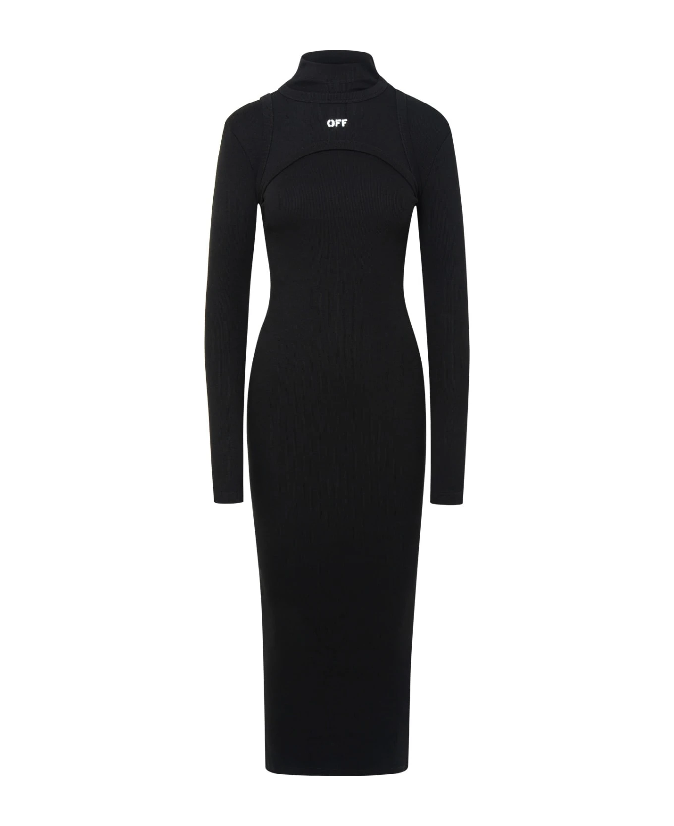 Maxi dress with stretch fit, micro ribbed crew neck, logo on the front