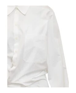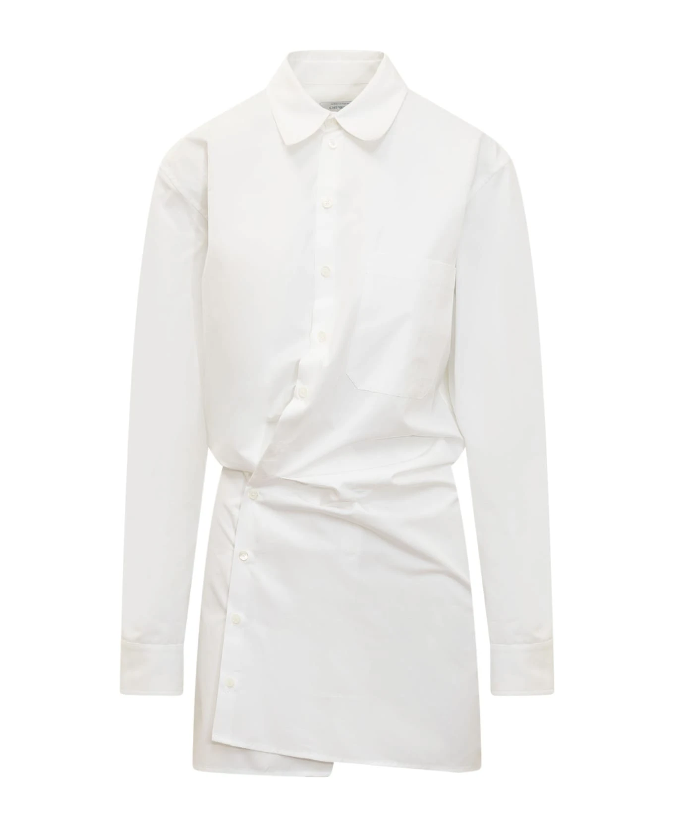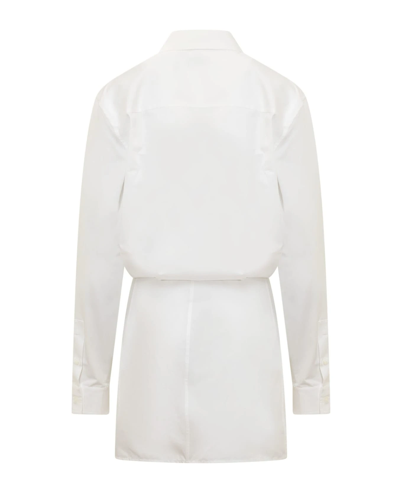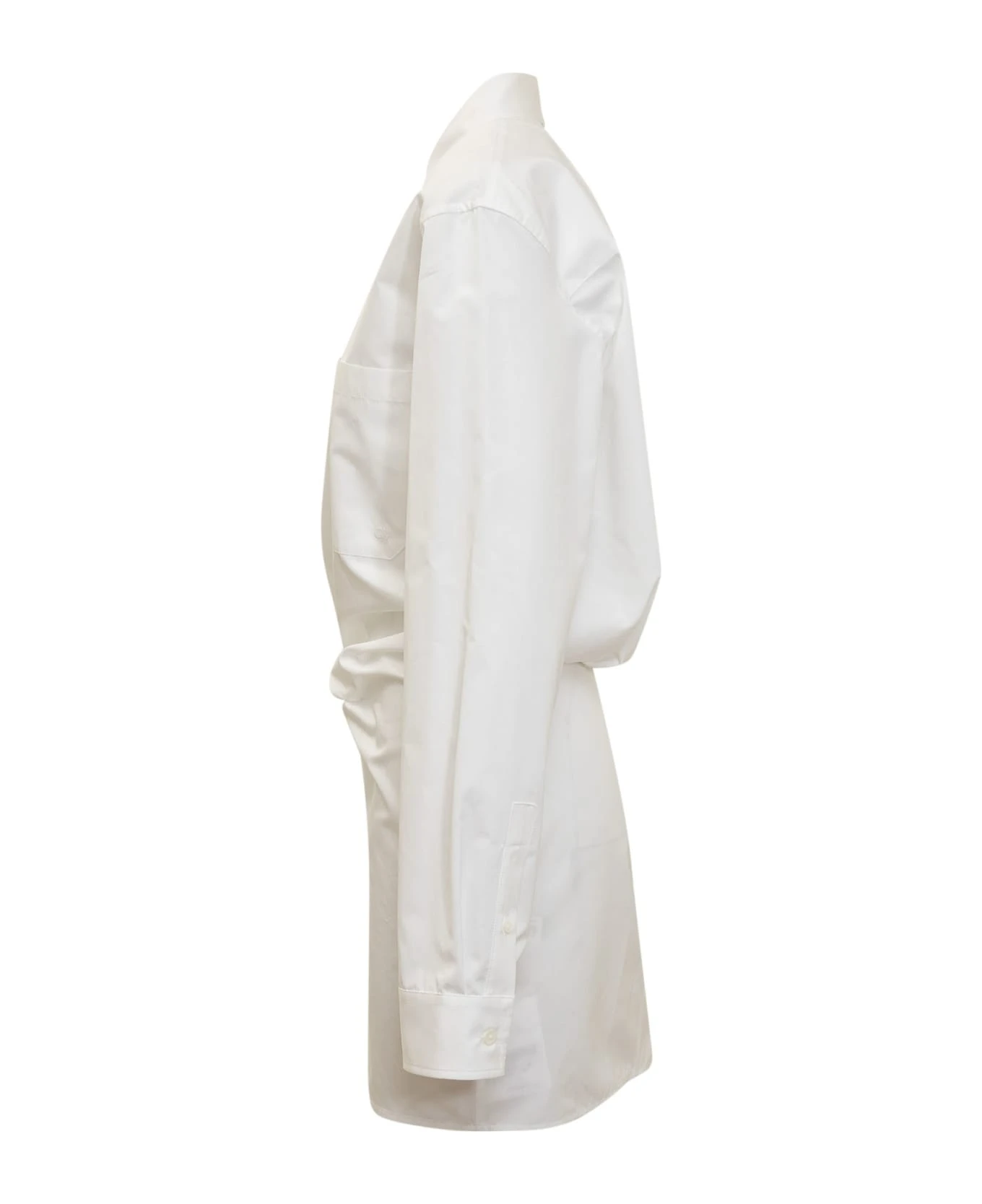 Long-sleeved mini dress. Classic collar. Button closure. Cuffs with buttons. Pocket on front. Embroidered logo on pocket.