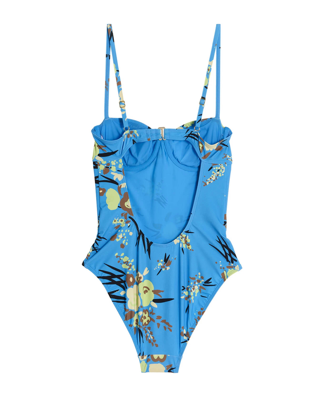 Swimming trunks with all-over floral print, cups with ferretto and thin adjustable shoulder straps.