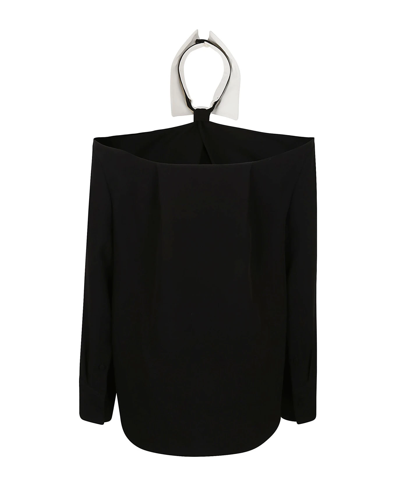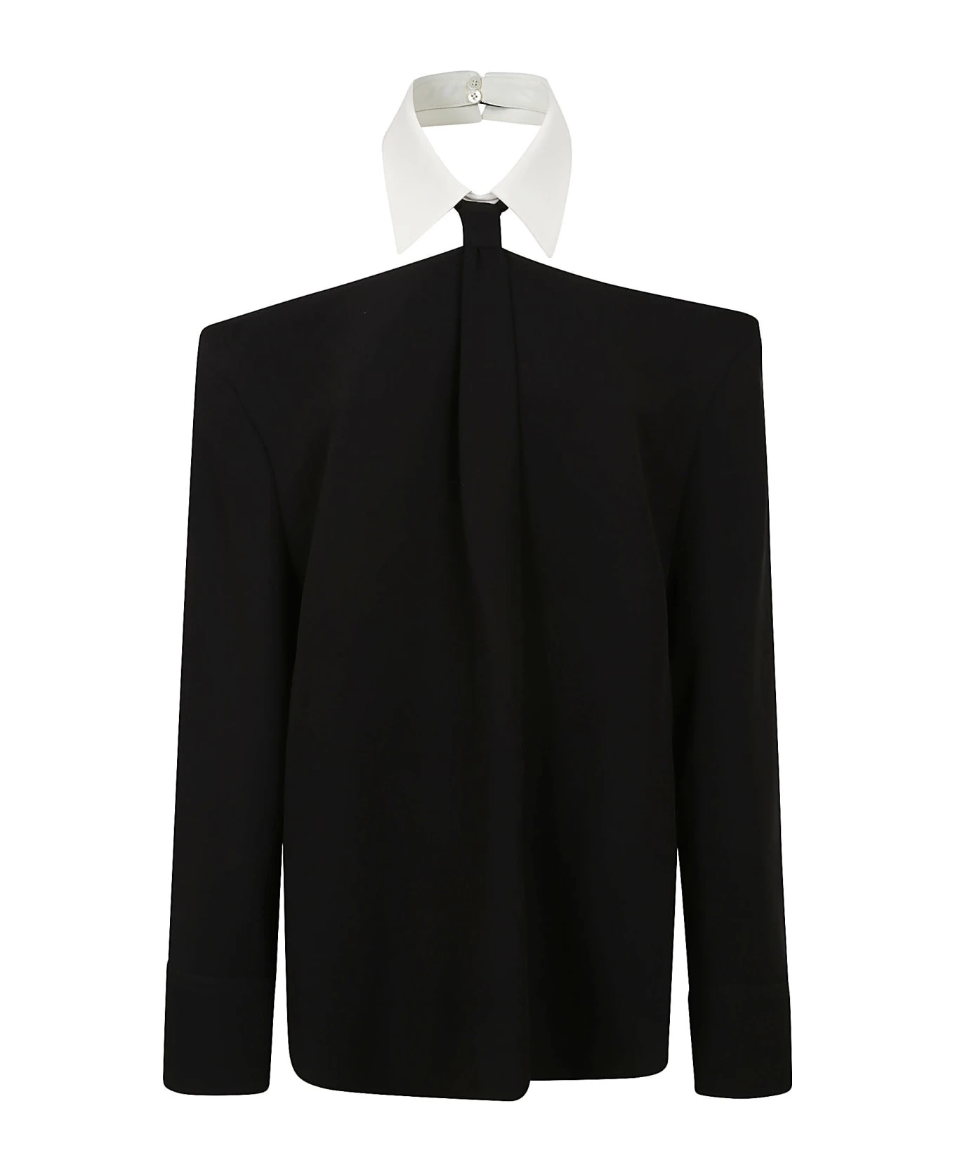 Crepe Couture top BY VALENTINO GARAVANI. Long sleeves; Poplin neck detail with tie and back neckline.