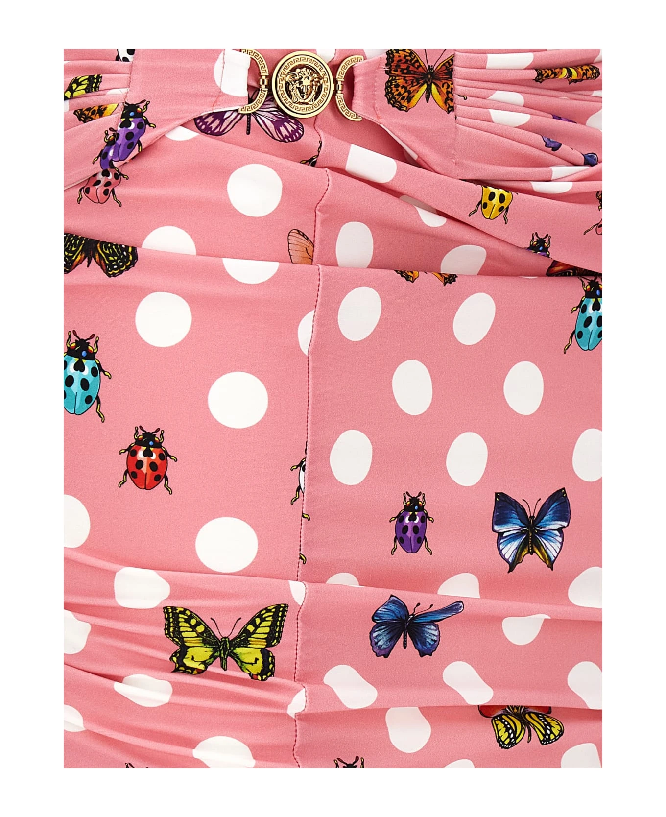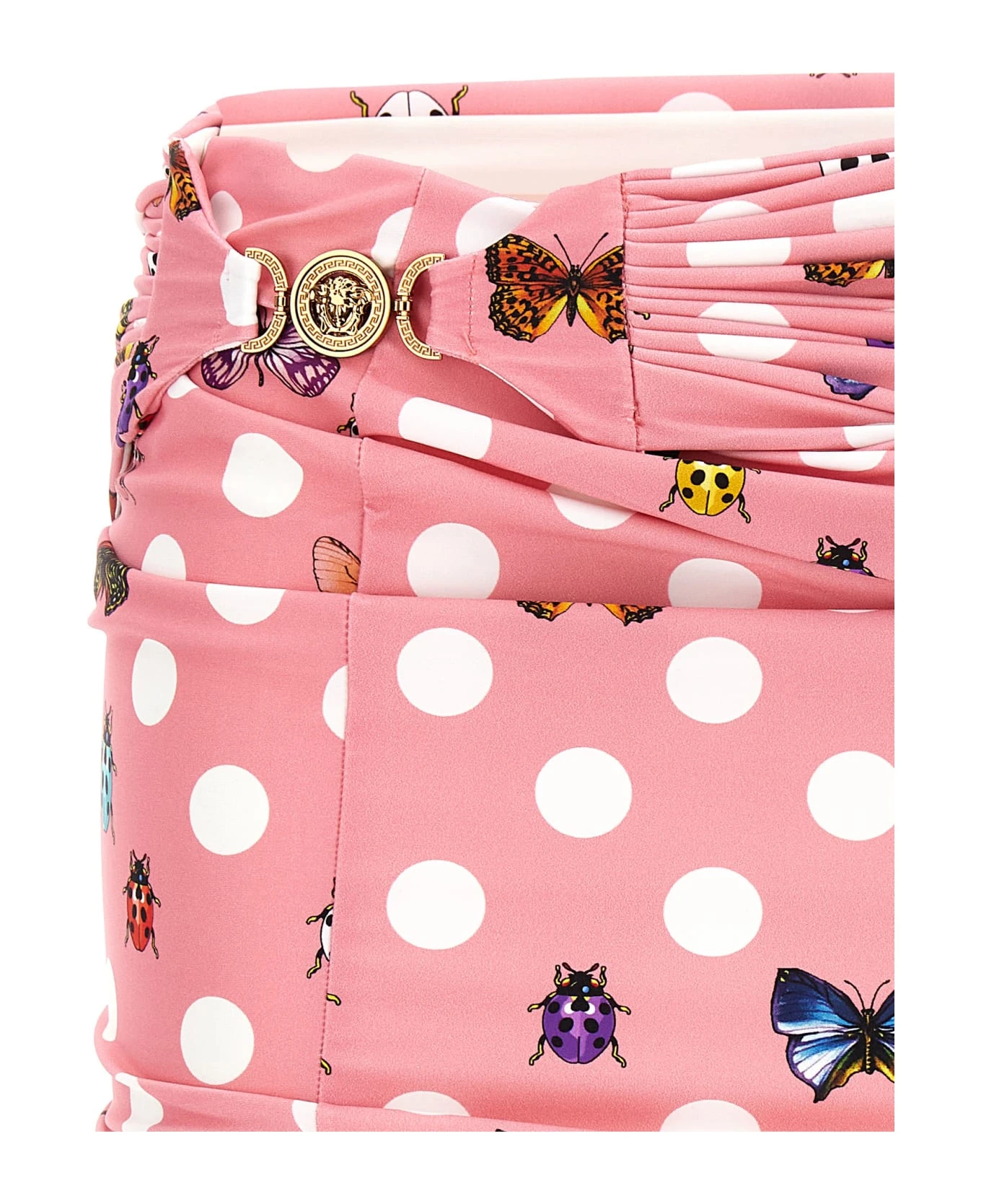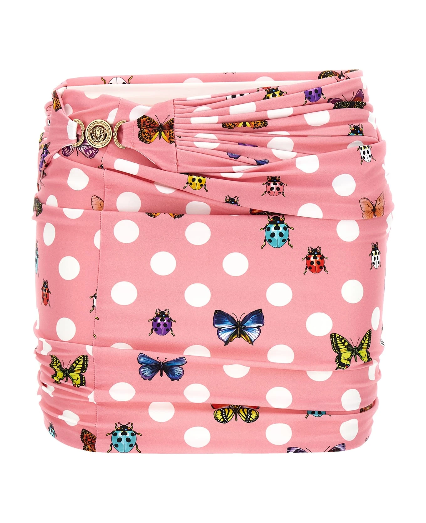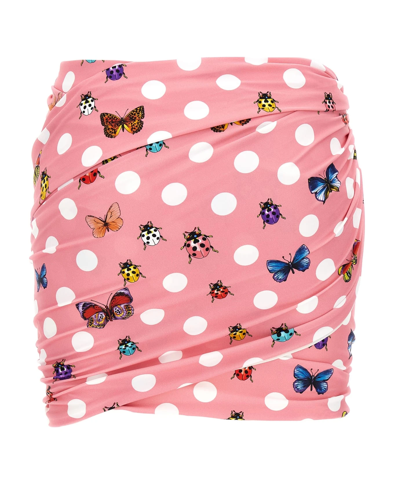 La Vacanza capsule skirt in stretch fabric featuring metal ‘Medusa’ detail and an all-over print.