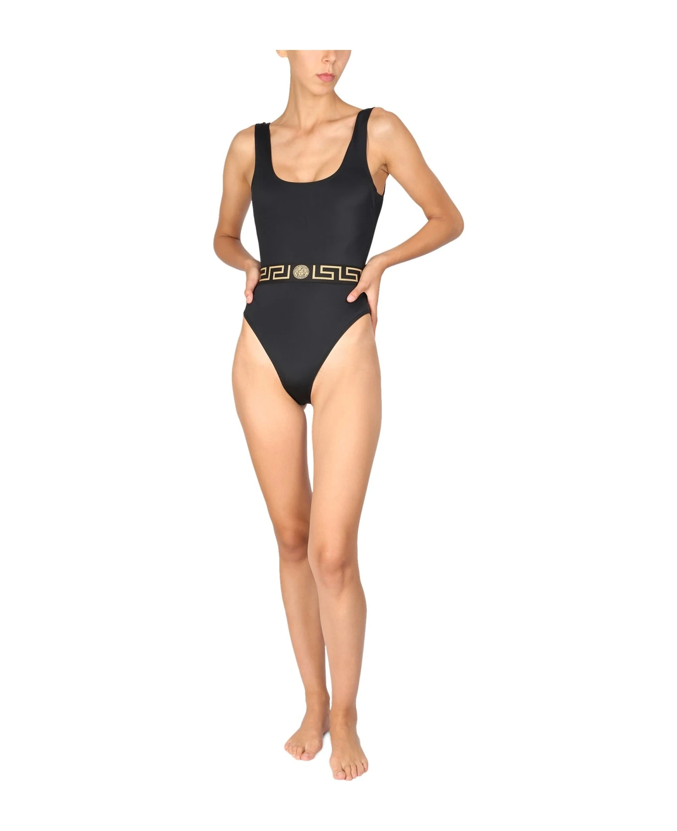 – Round Neckline- Open Back- Band With Greek Motif At Waist- 78% Polyamide, 22% Elastane- Made In Italy- The Model Is 180 Cm Tall And Wears Size 2