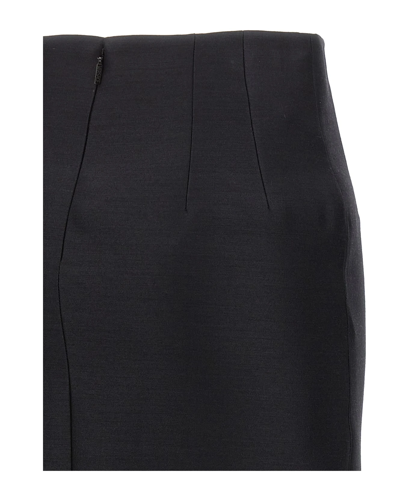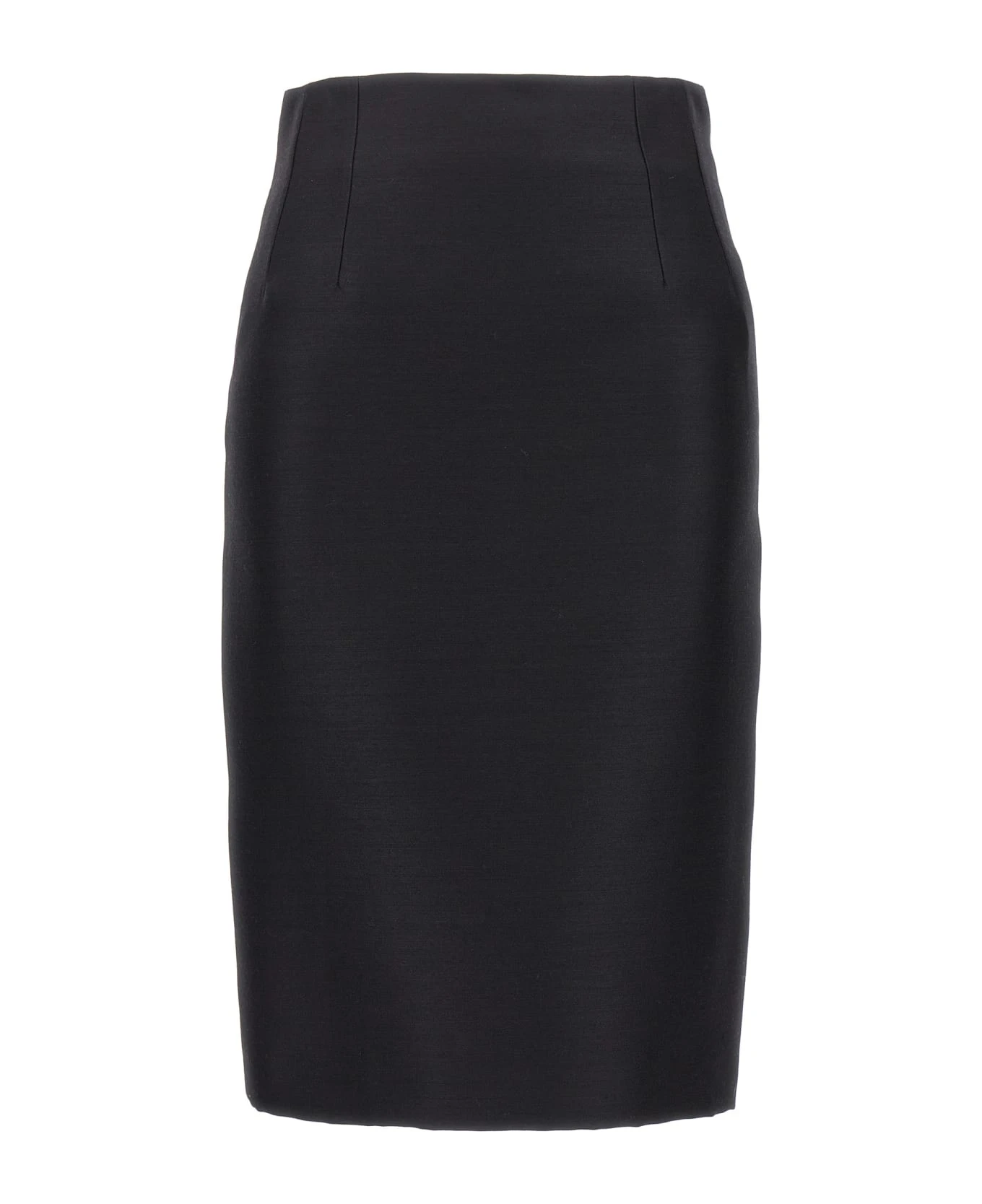 Sheath skirt in wool and silk blend, back slit, back zip closure.