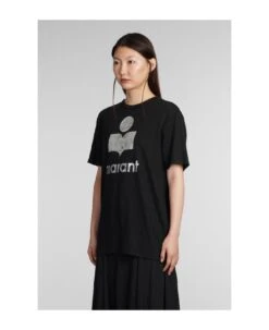 Zewel T-Shirt in black cotton, round neck, logo print on front, short sleeves, 100% cotton, Made in India, Model is 1. 77 cm and wears size s